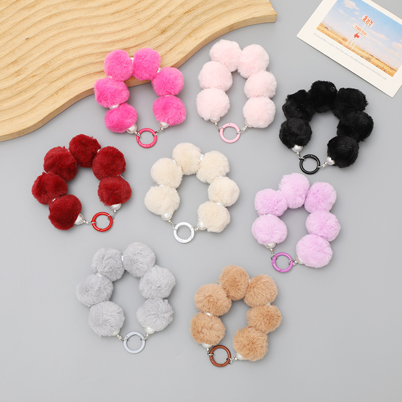 Yilian autumn and winter New fur ball beaded pendant diy mobile phone case bag ornaments short wrist strap lanyard for women