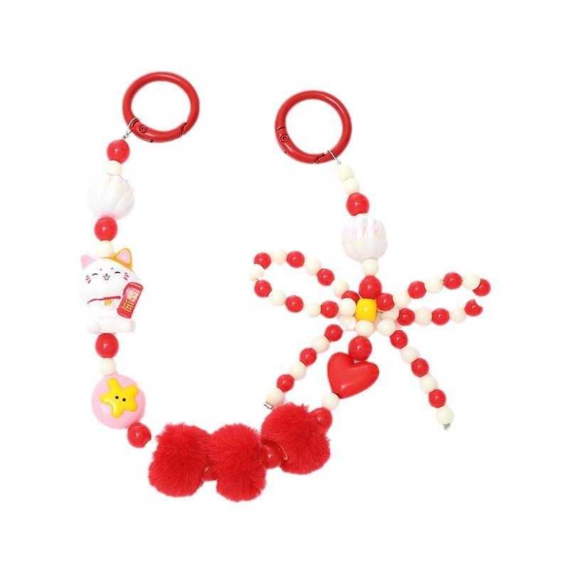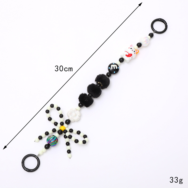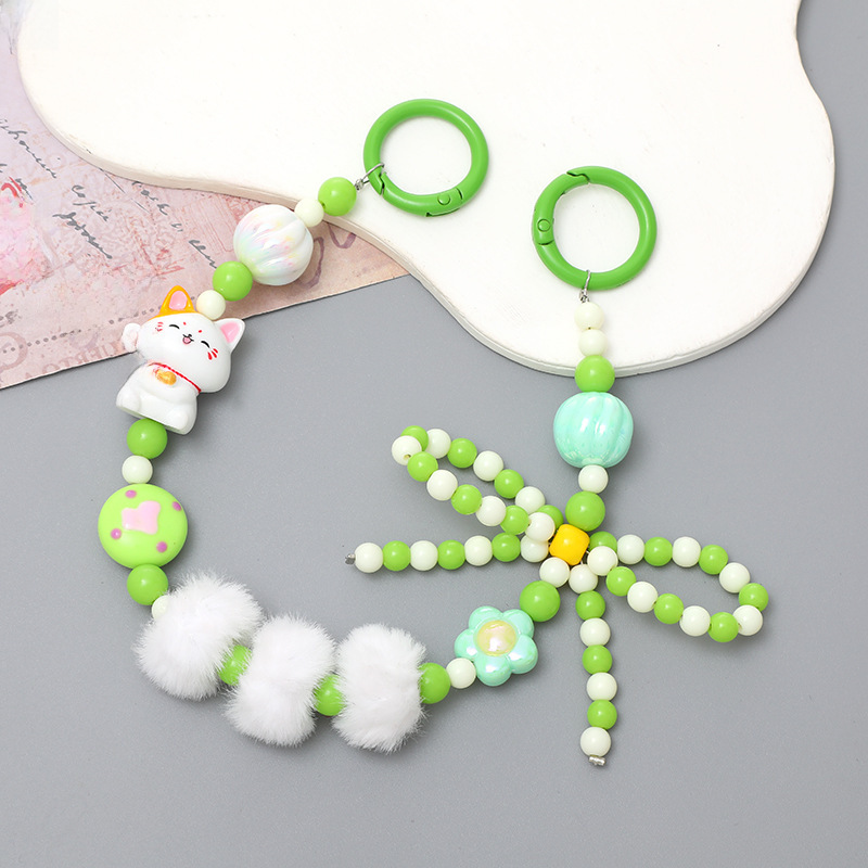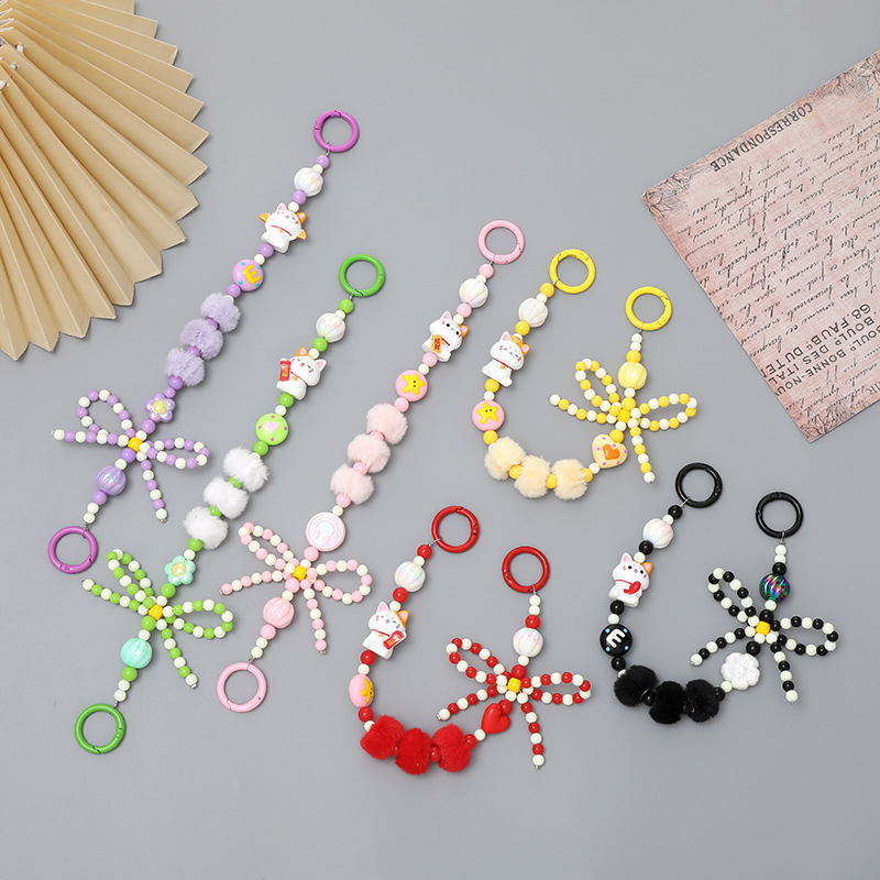 | nameOriginal | Yilian new cartoon lucky cat portable chain plush beaded bracelet water Cup bag keychain drop-resistant chain wholesale |