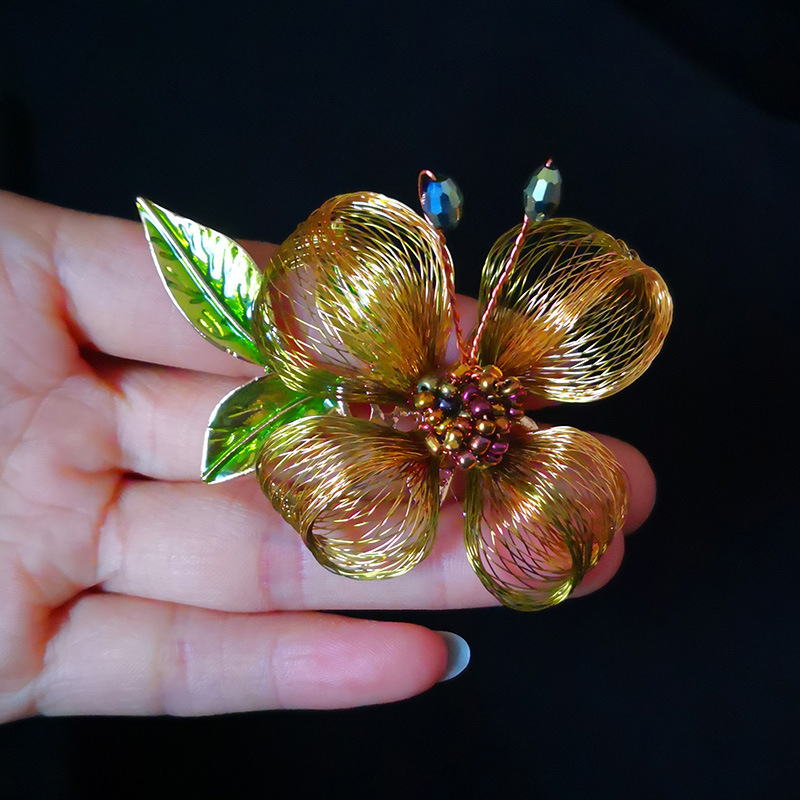 | nameOriginal | Yinghua Jewelry Pull Flower Metal Gradient High-end Niche Brooch Corsage Live Ladder Design Pin Accessories |