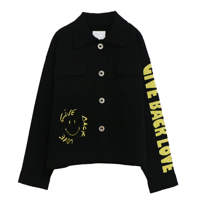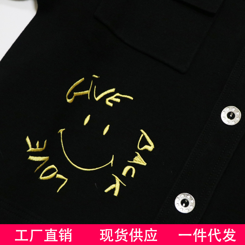 Yingjie S family spring and summer 2022 new niche knitted coat women's cardigan baseball shirt embroidered Smiley sweater coat