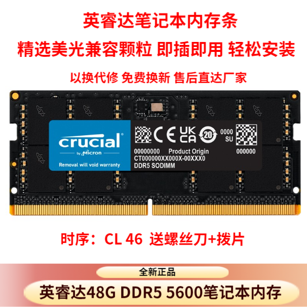 | nameOriginal | Yingruida Micron 16G 32G DDR5 4800 5600 notebook memory stick upgrade computer new original |