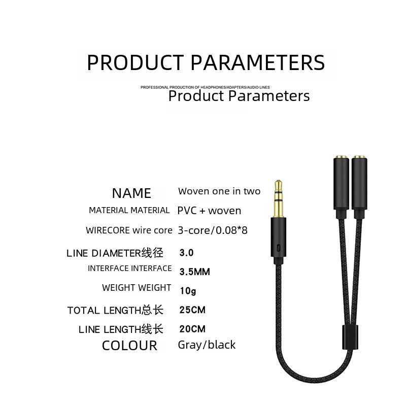 | nameOriginal | Yinhe 3.5mm one and two lovers splitter one male and two female gold-plated audio cable nylon braided earphone cable |