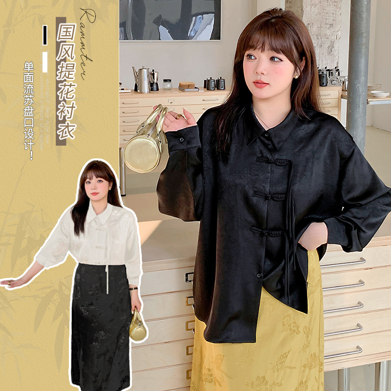 Yinuo plus size women's retro loose top 2024 spring new Chinese style stand collar shirt 130036