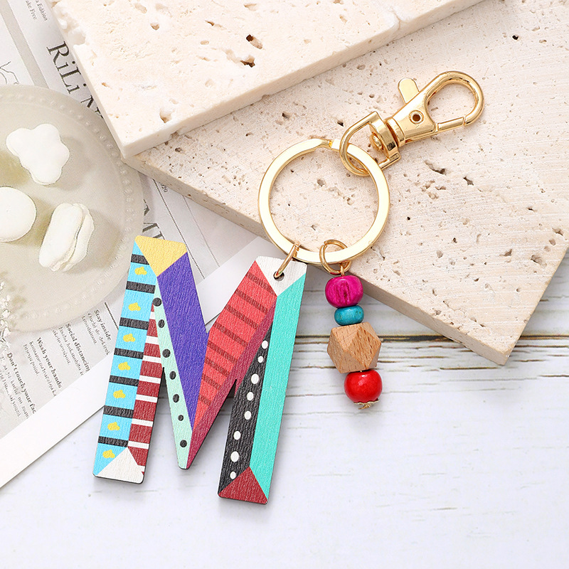 | nameOriginal | Yiwu Gift Wooden 26 Letters Geometric Totem Keychain Wooden Beads Accessories Bag Car Pendant |