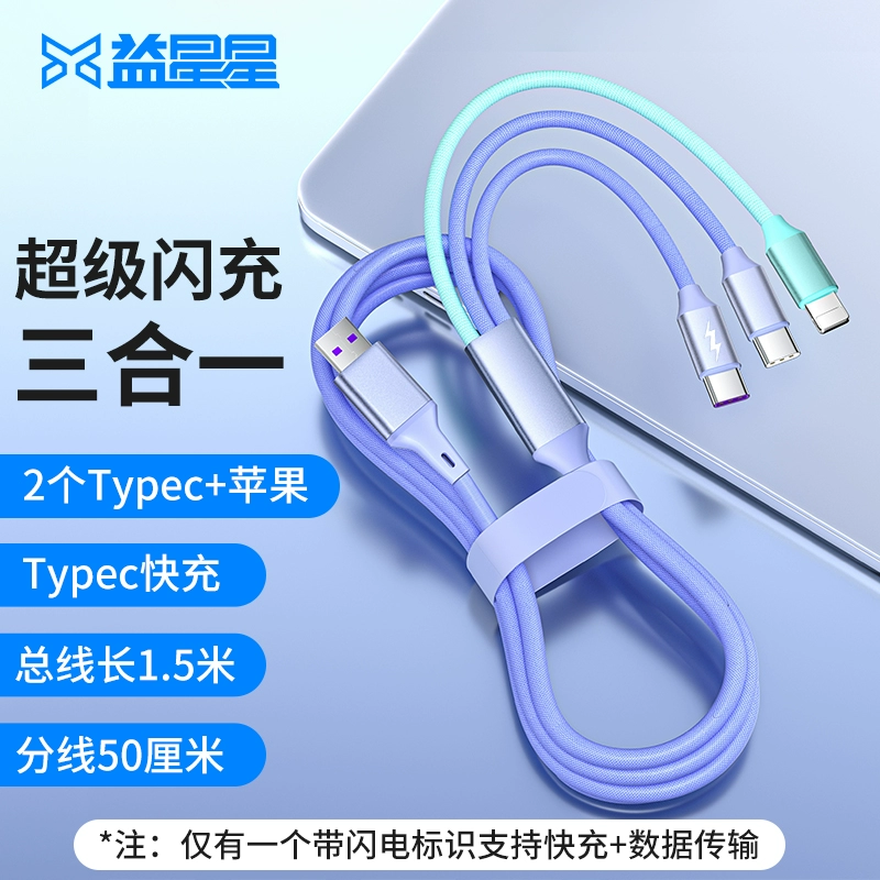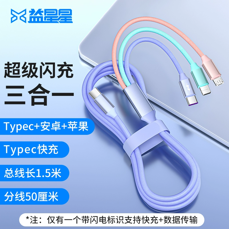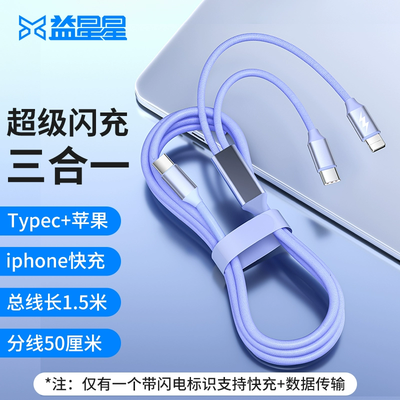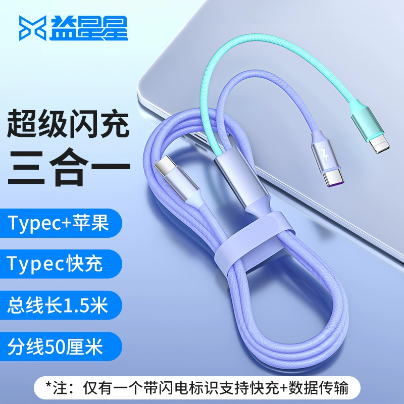 | nameOriginal | Yixingxing data cable three-in-one PD car multi-head three-head multi-function charging cable typec interface one-to-three typec super fast charging cable suitable for Apple 15 Huawei mobile phone power bank |