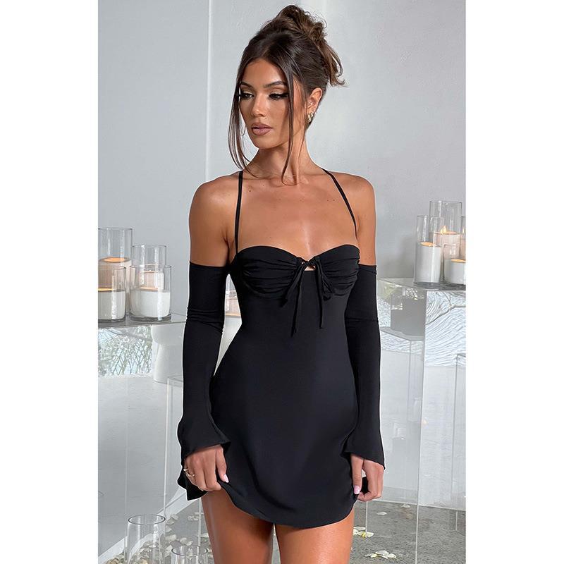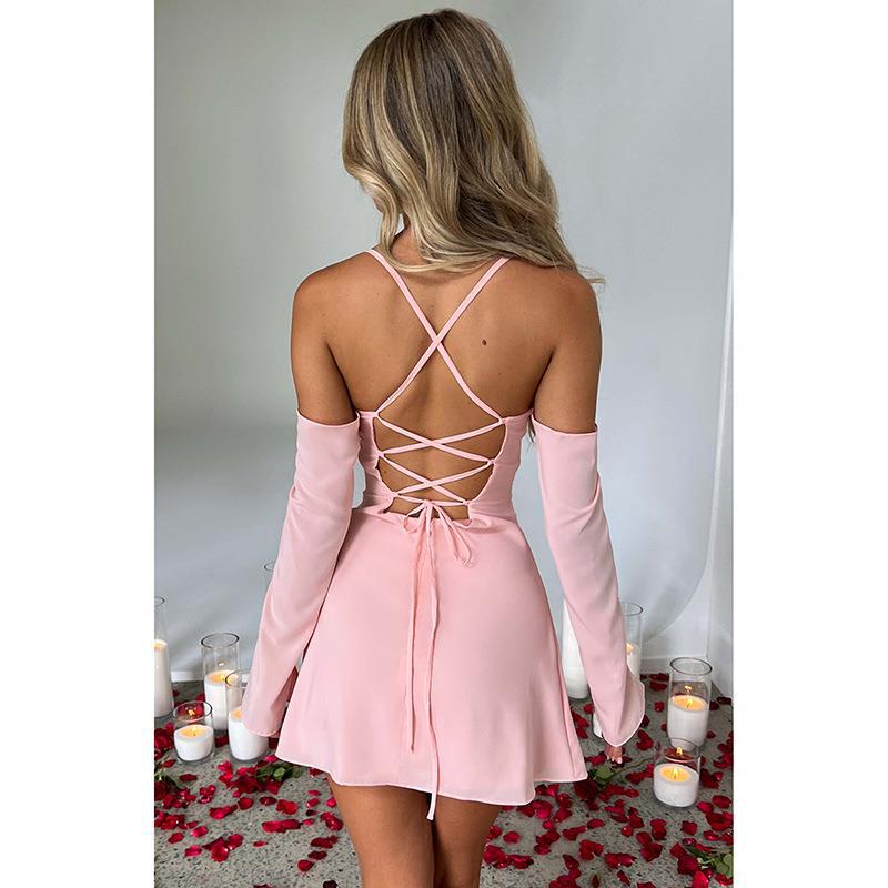 | nameOriginal | YJ23359 summer new sexy hot girl slim halter strap oversleeve backless strap A- line dress women |