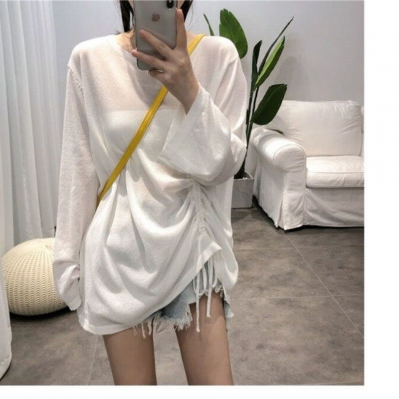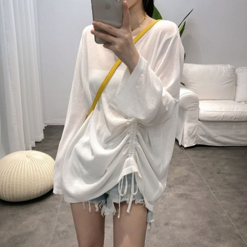 | nameOriginal | Yoga blouse ice silk sweater women's summer thin long-sleeved sun protection clothing hollow loose pullover drawstring top air conditioning shirt |