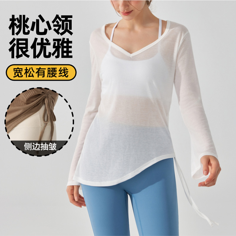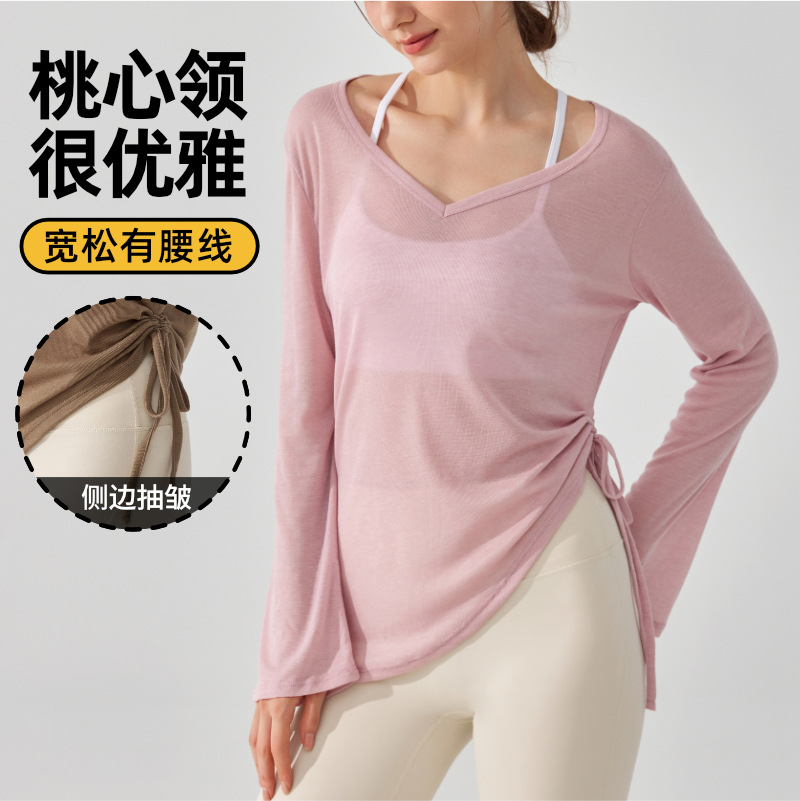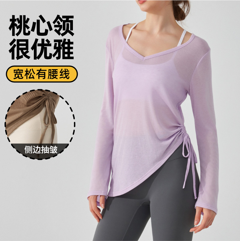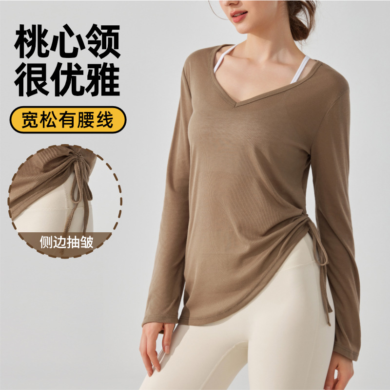 | nameOriginal | Yoga Blouse Long-sleeved Hip Covering Women's Pleated Drawstring T-shirt Loose Casual Autumn Dance Fitness Running Yoga Clothes |