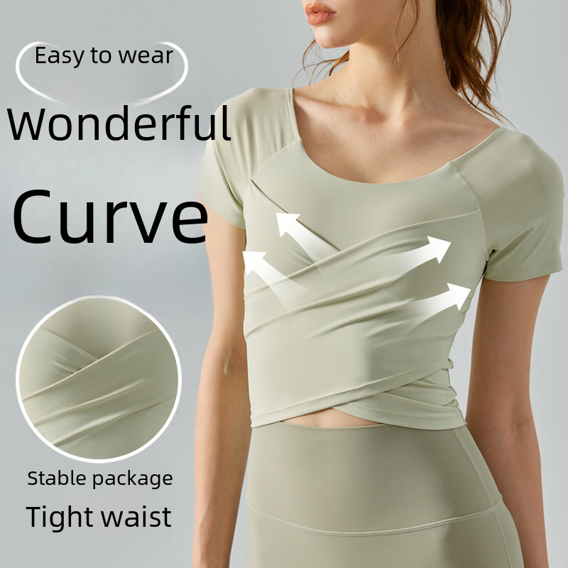 Yoga Clothing Top One-piece with Chest Pad Fashion Sports T-shirt Slim-fit Slimming Breathable Sports Fitness Top for Women