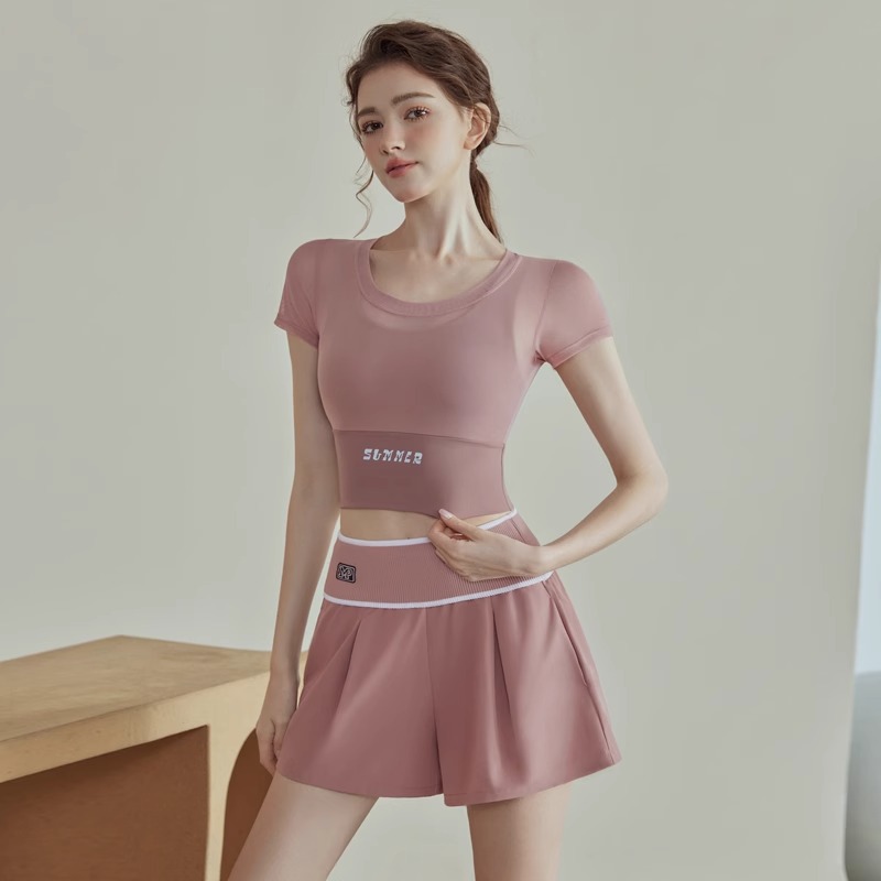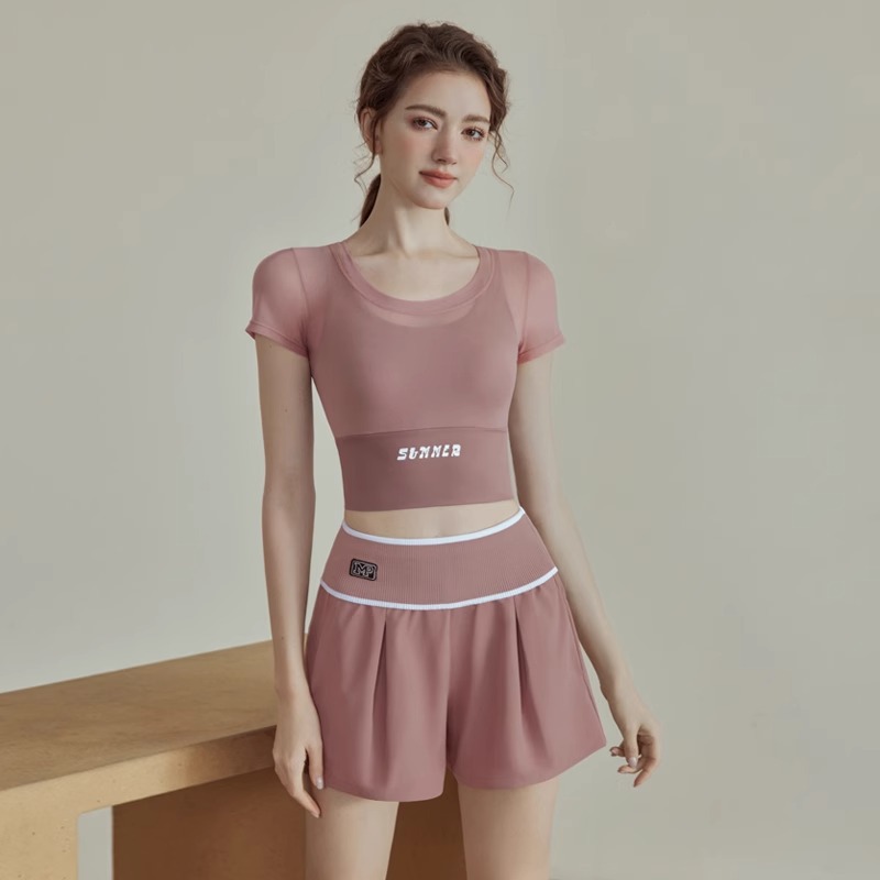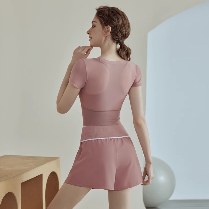 | nameOriginal | Yoga Suit Girls Short-sleeved New Spring and Summer Breathable Top Pilates Training Running Fake Two-piece Sports Fitness Suit |