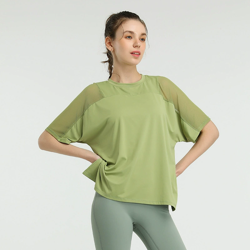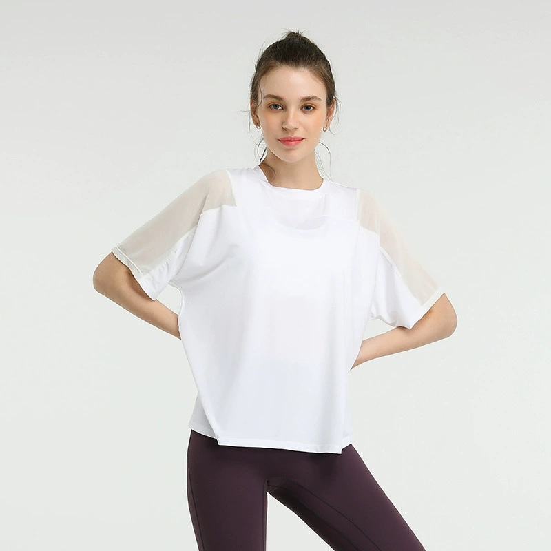 Yoga women's stretch mesh patchwork blouse for fat mm short sleeves