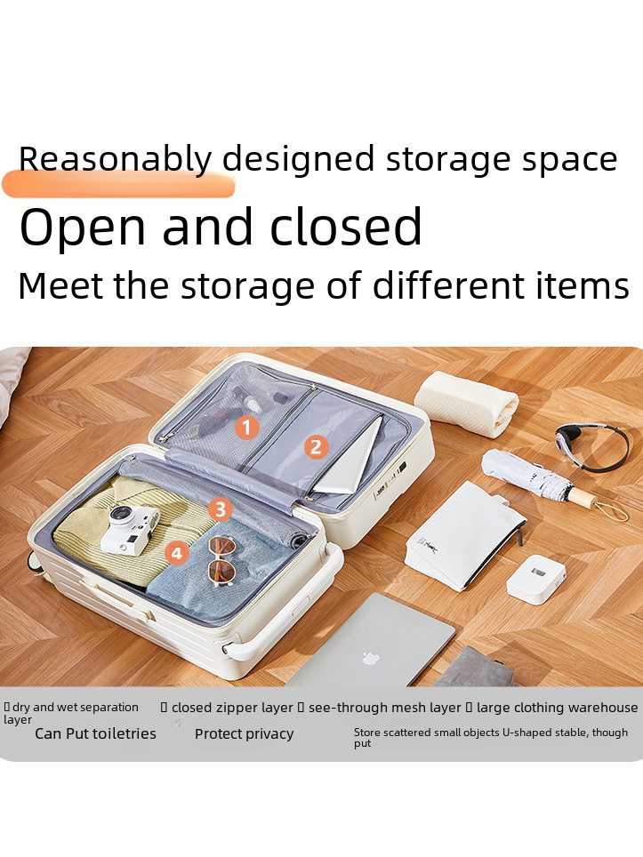 | nameOriginal | Yongsheng luggage 20 inch password boarding box new dopamine color matching net red suitcase front open lid trolley case |