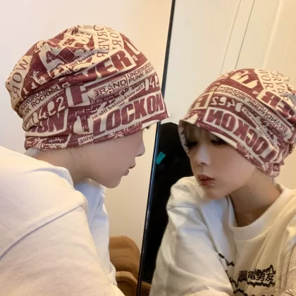| nameOriginal | You can wear retro heap hat with text pattern if you don’t wash your hair |