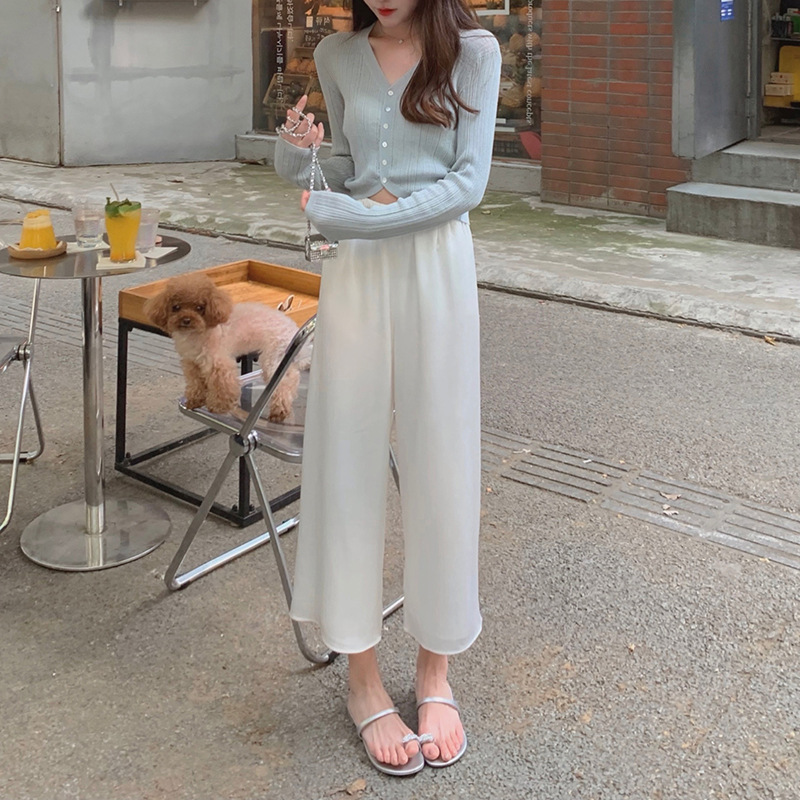 | nameOriginal | You/embossed acetate floating pants ~ lightweight elegant all-match straight casual cropped pants for women Summer new |