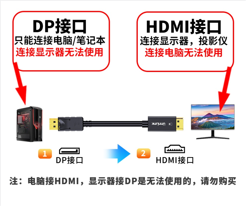 Youlian dp to hdmi adapter cable 4k60hz high definition dp to hdmi2.0 connection computer host notebook