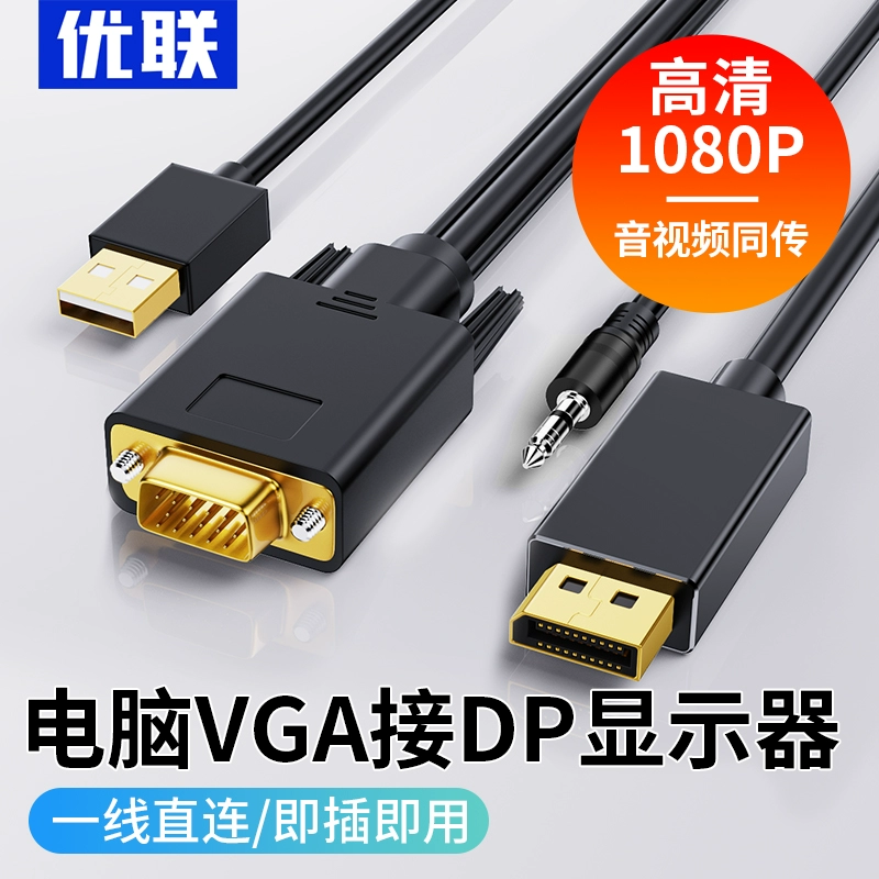 Youlian VGA to DP conversion cable with audio power supply laptop screen projection same-screen set-top box connection cable monitor TV projector adapter cable HD 1080P