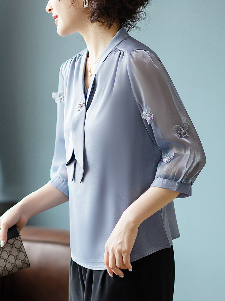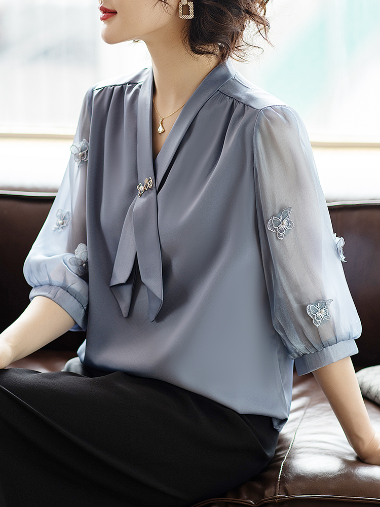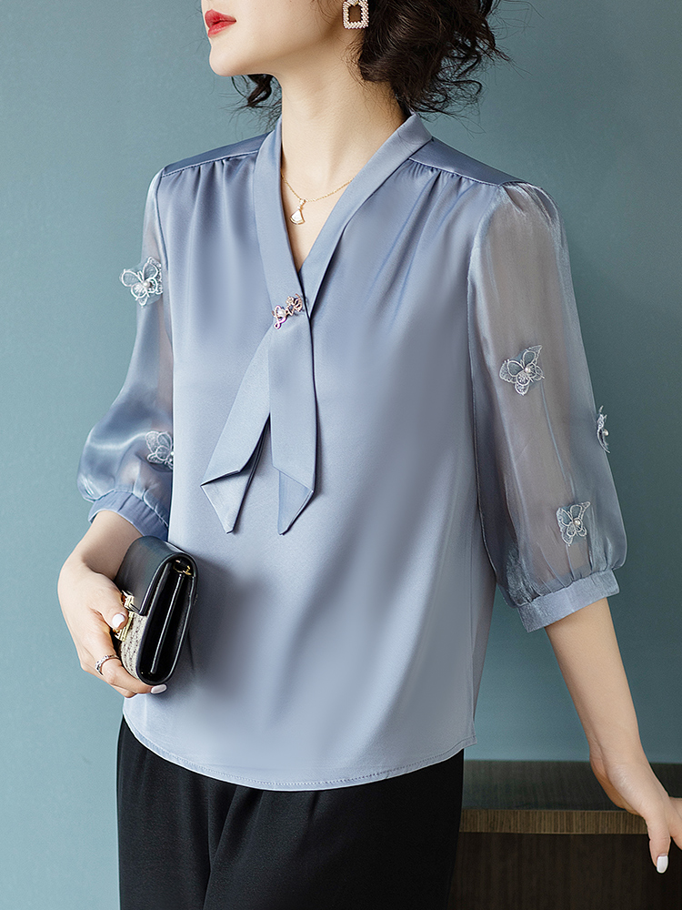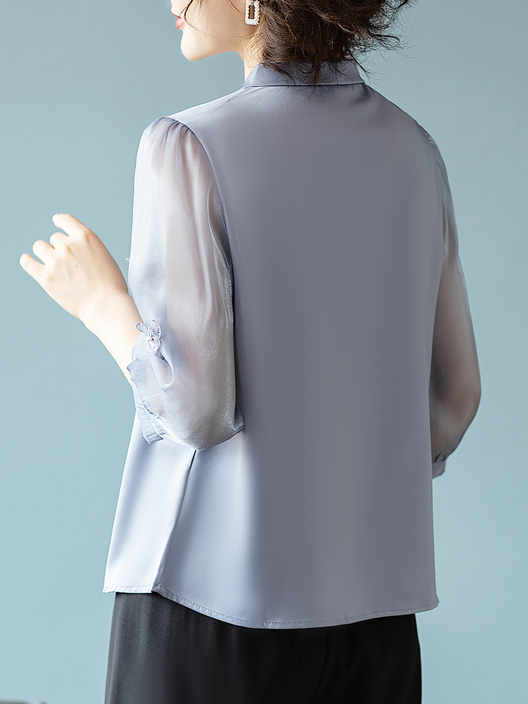 | nameOriginal | Young mother noble temperament chiffon suit middle-aged and elderly T-shirt casual top 40 year old women's summer new small shirt |