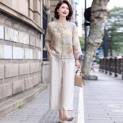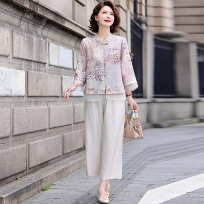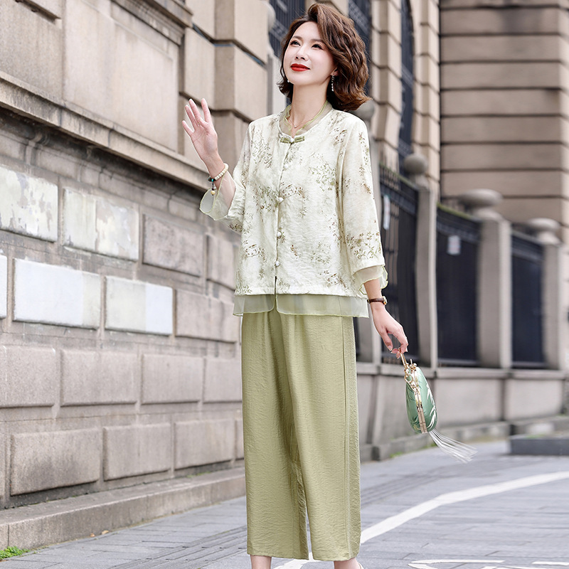 | nameOriginal | Young mother's summer new Chinese style national style shirt two-piece western style middle-aged and elderly women's small shirt set |