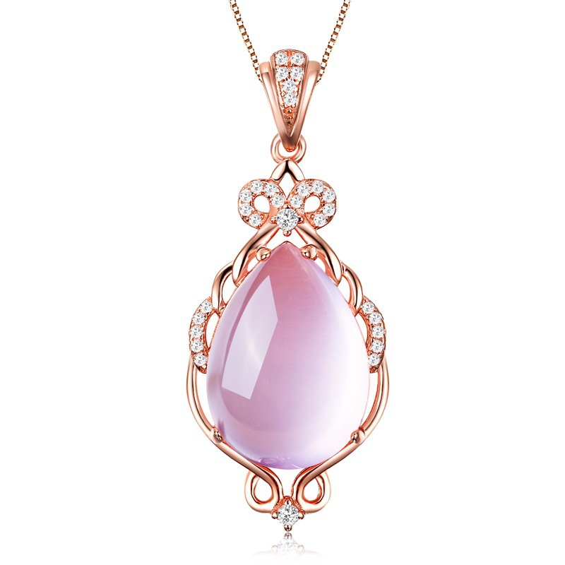 | nameOriginal | Young silver-plated necklace women's smart natural pink crystal hibiscus stone pendant rose gold clavicle chain gift silver |