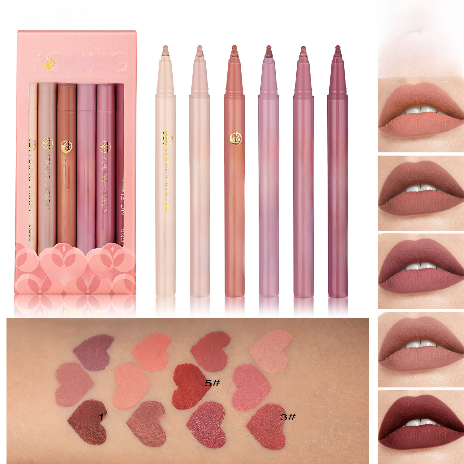 | nameOriginal | YOUNG VISION matte 6 color liquid lip liner pen suit sponge gourd head matte nude lipstick pen |
