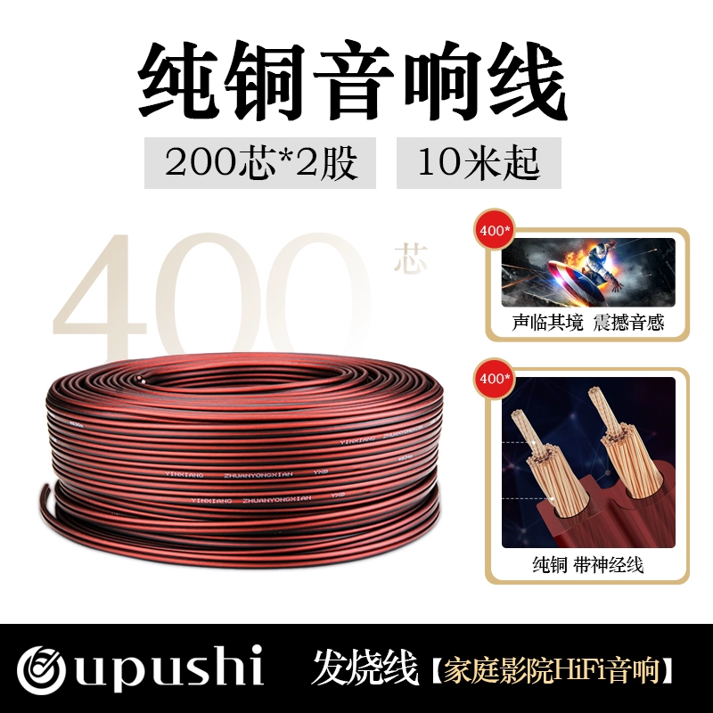 | nameOriginal | Youpusi 200# engineering audio cable high-fidelity speaker fever cable pure copper audio cable extension speaker gold and silver cable |
