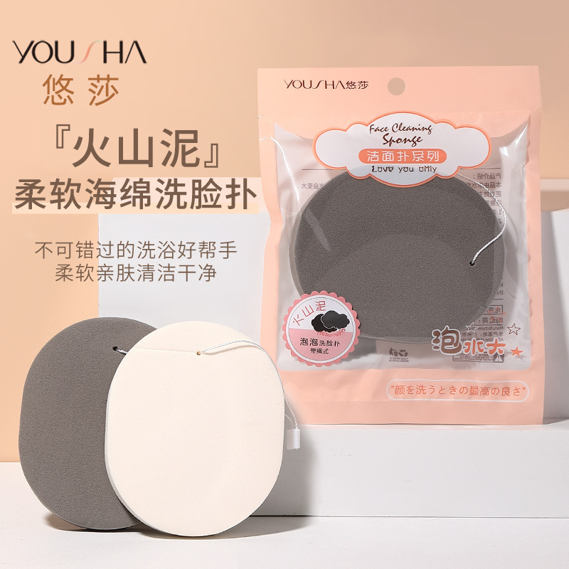 Yousha 12T single pack with rope face washing puff volcanic mud cleaning makeup remover facial cleansing tool YB074