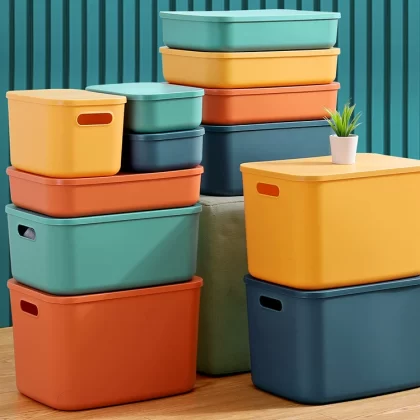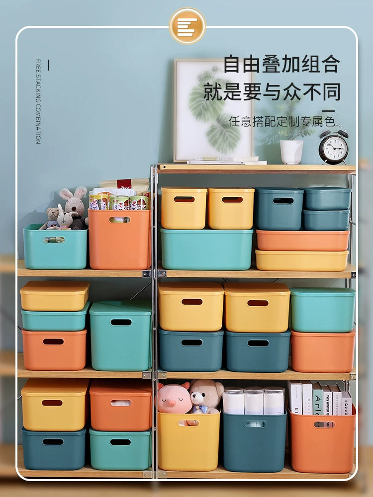 Yousiju desktop storage box household plastic storage box with lid cosmetics snack sundry storage basket finishing box
