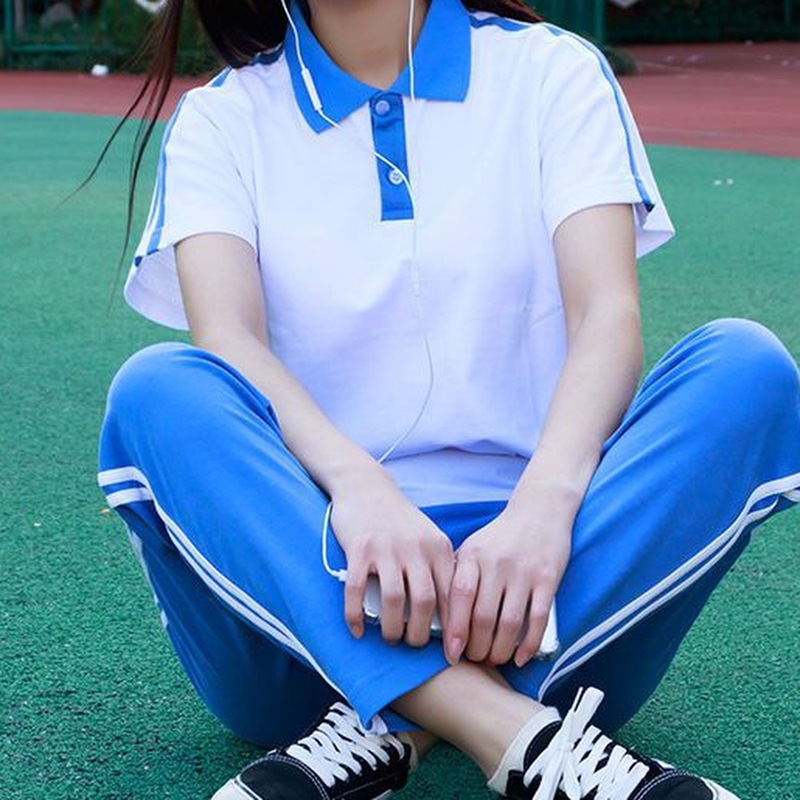 | nameOriginal | Youth High School Uniform Suit Junior High School Class Suit Sports Men's and Women's Summer Blue and White Short-sleeved Top Trousers |