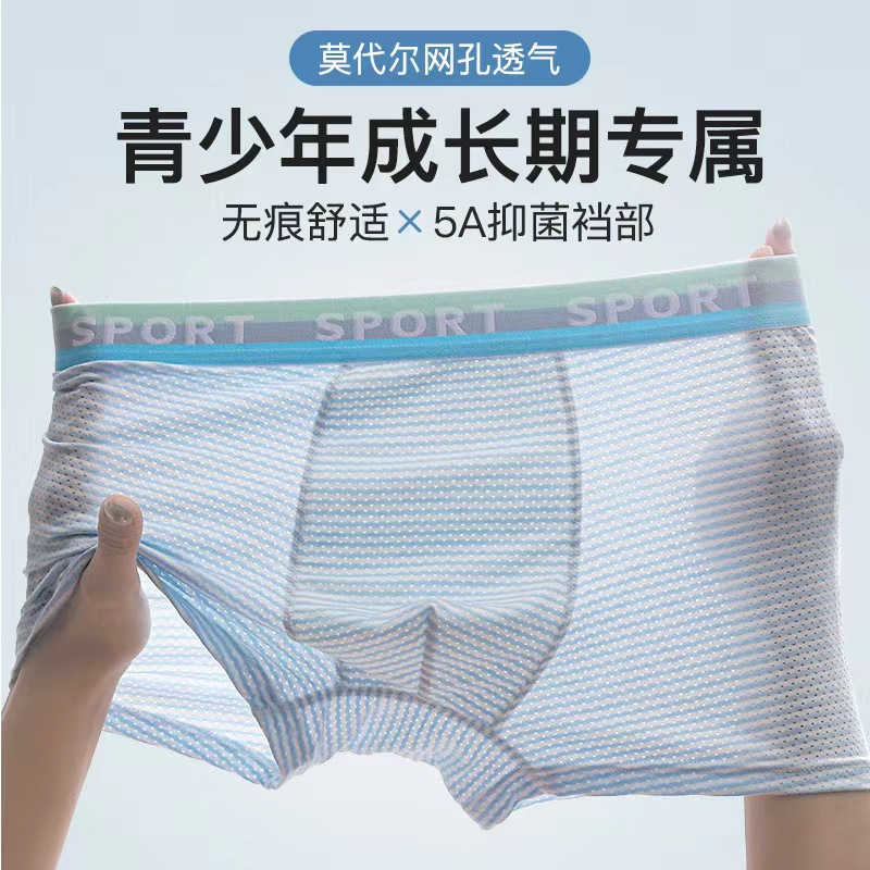Youth underwear men’s summer breathable modal mesh mesh silver boxer shorts high school students junior high school students