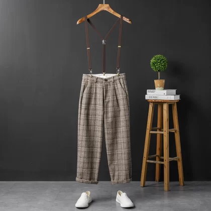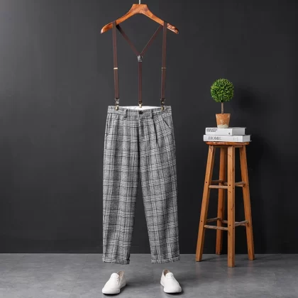 | nameOriginal | Youthful retro plaid groomsmen trousers gray artistic |