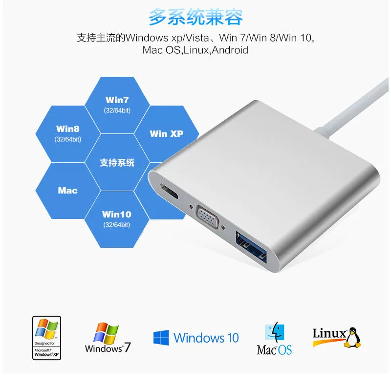 Youting Type-c docking station converts HDMI+USB or mobile phone notebook USB3.1-C to VGA+PD display
