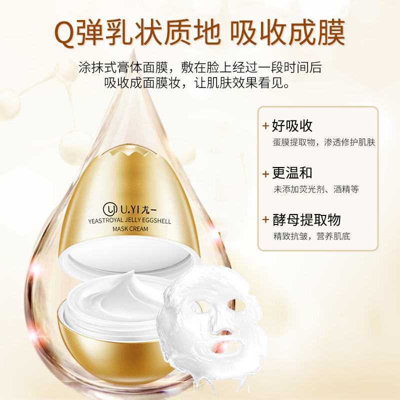 | nameOriginal | Youyi Egg Mask Hydrating Moisturizing Litching Tearing Mask Yeast Royal Jelly Egg Shell Shake Tone Same |