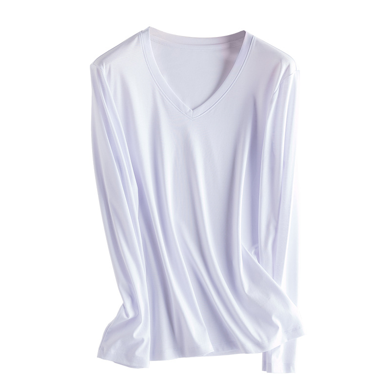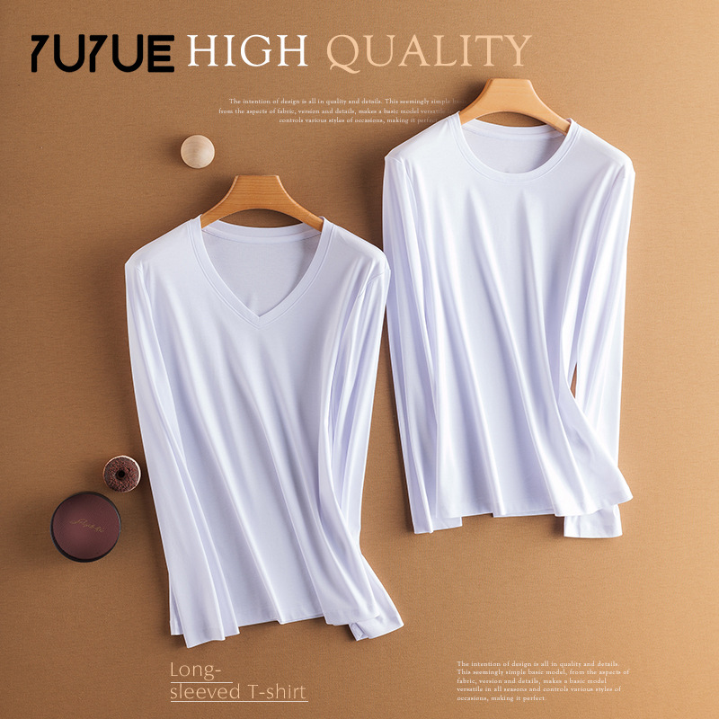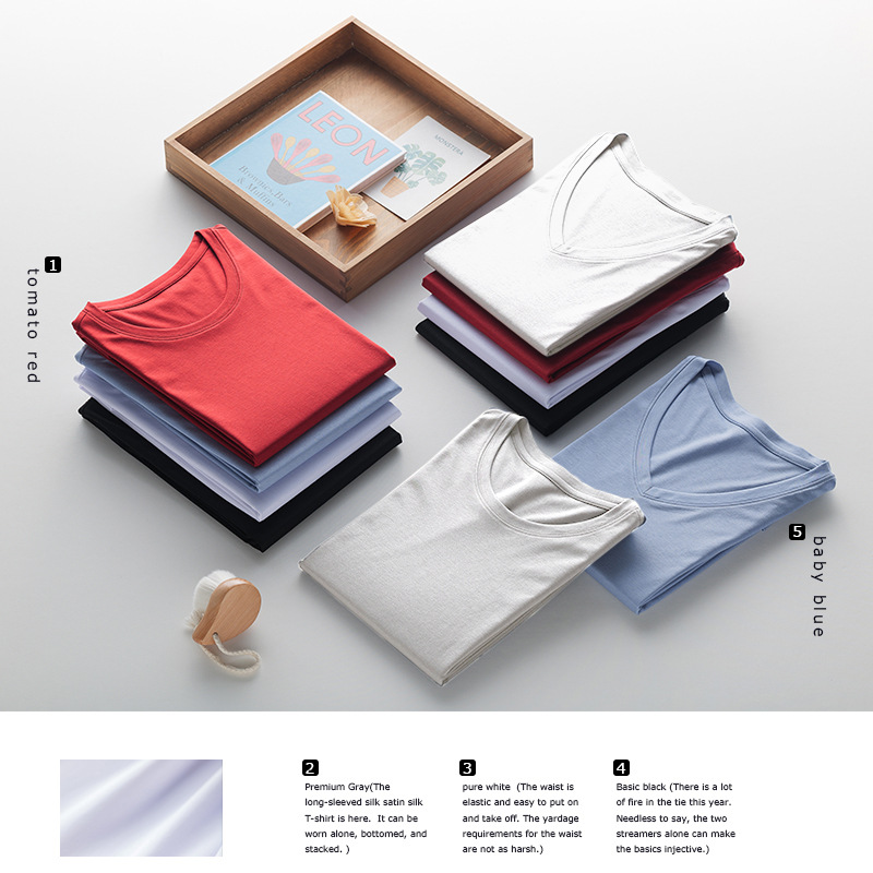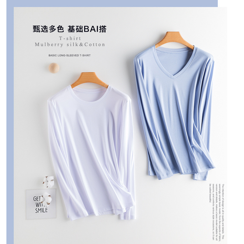 Yoyue mulberry silk mercerized cotton long-sleeved T-shirt women’s loose slimming solid color base shirt round neck V-neck slim fit basic