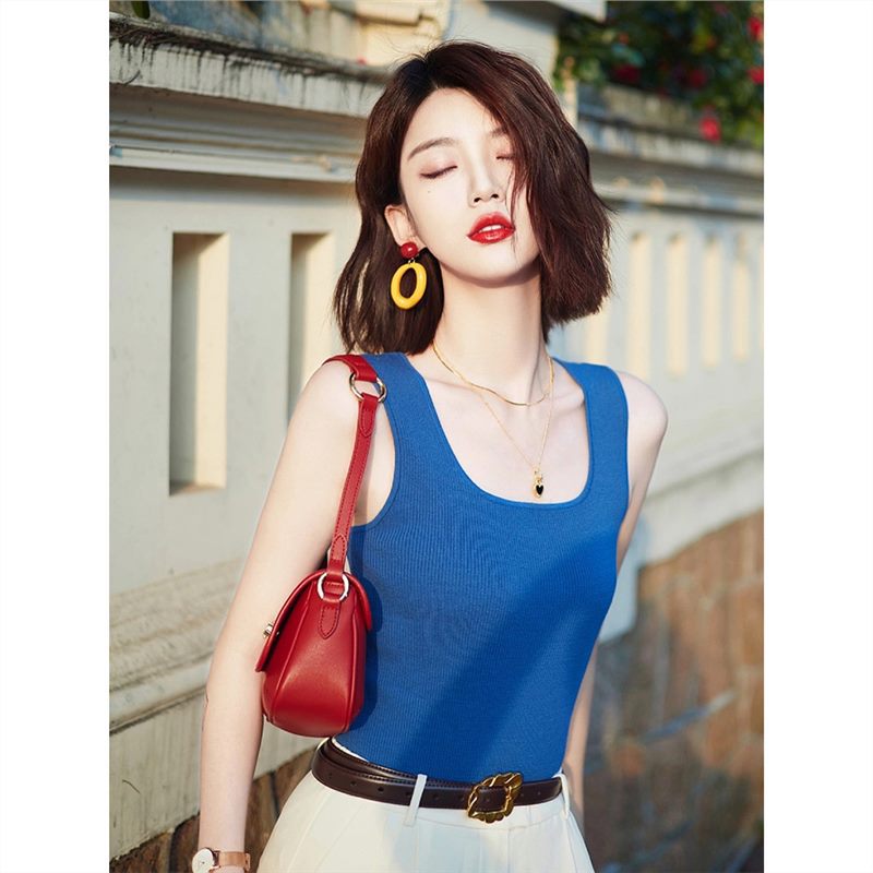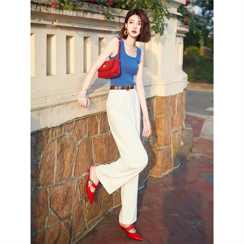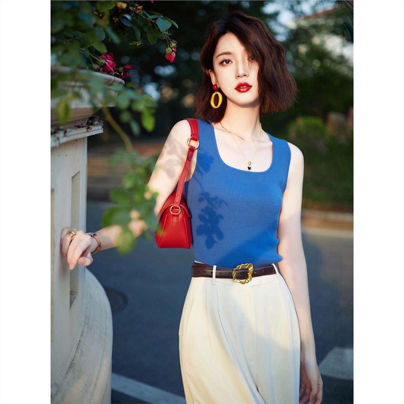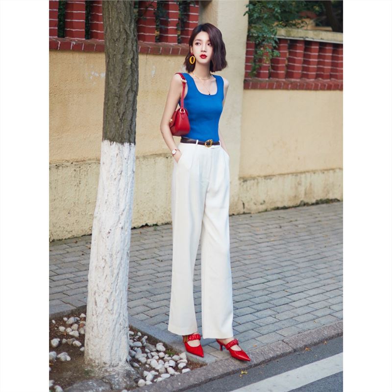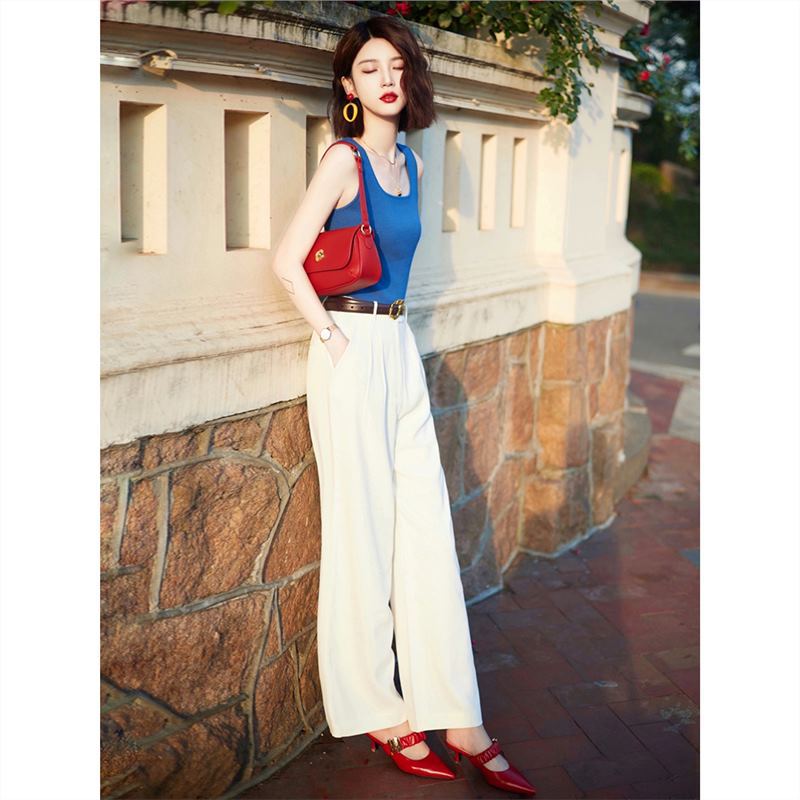 YT13256 two-piece suit pants women's summer blue sleeveless vest top wide leg pants socialite temperament women's clothing