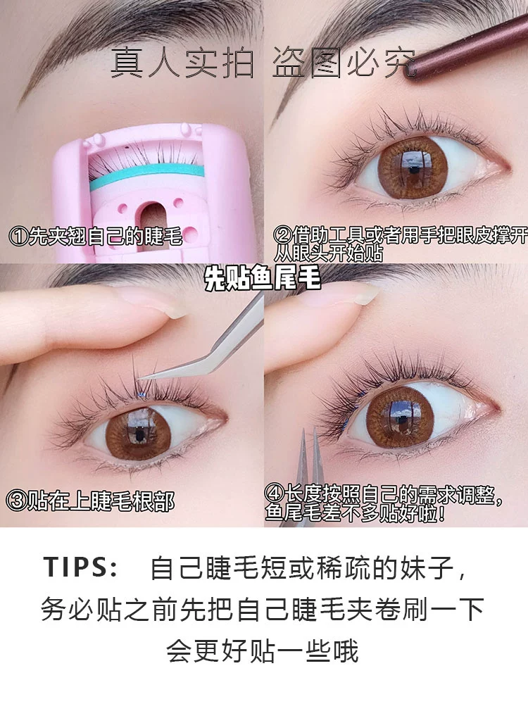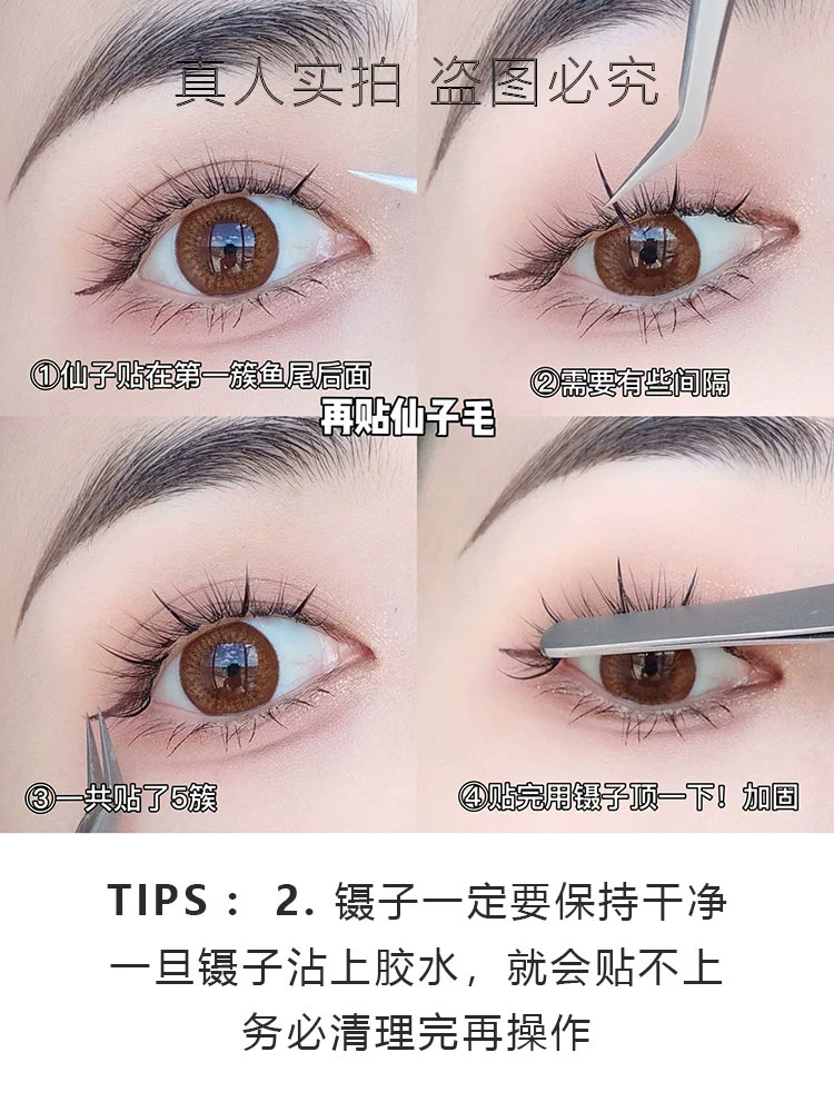 Yu Shuxin fishtail fairy eyelashes mixed outfit fairy hair A-type single cluster grafted natural comic false eyelashes for women
