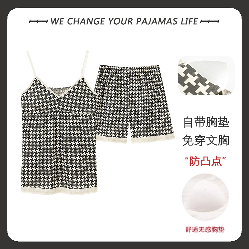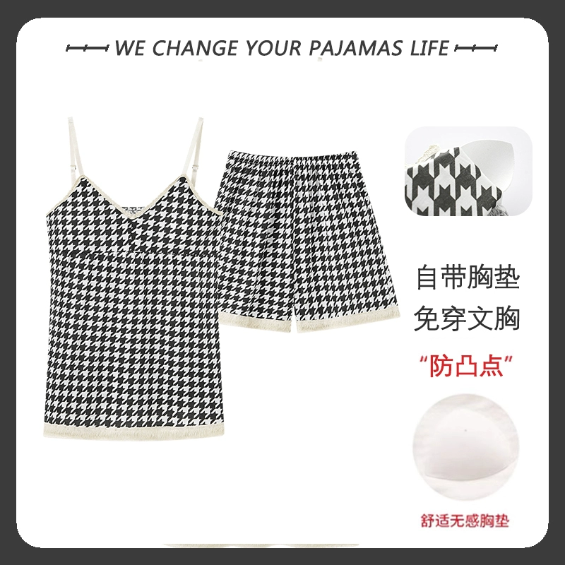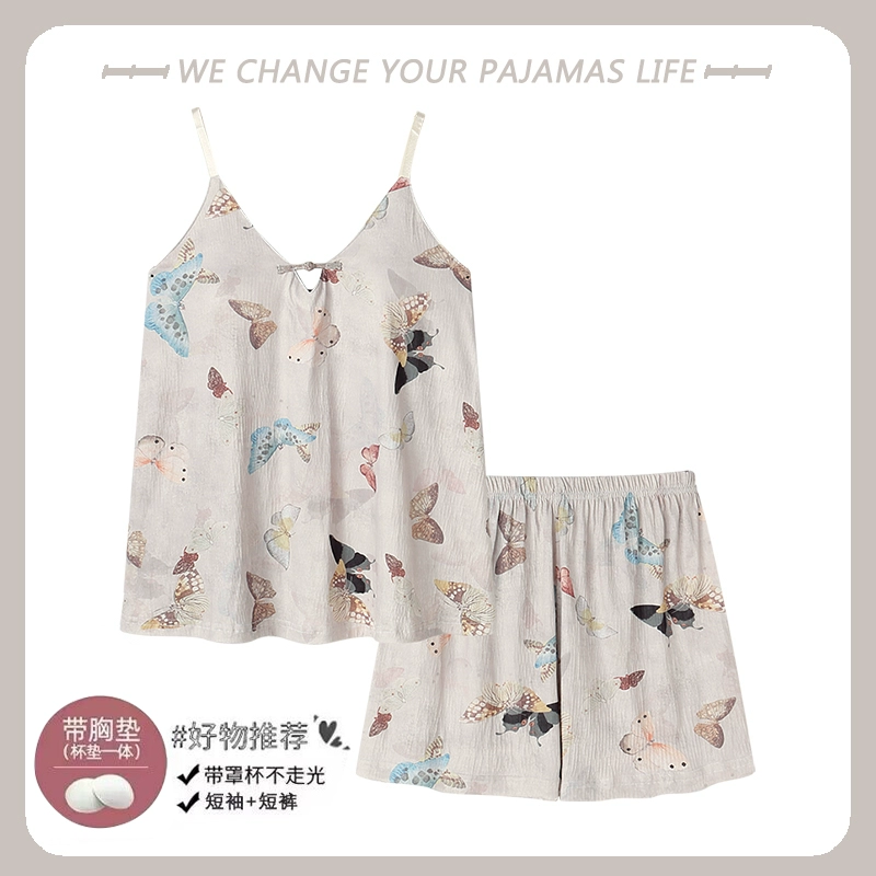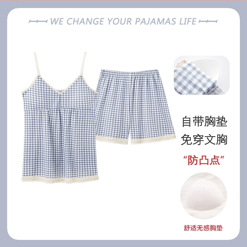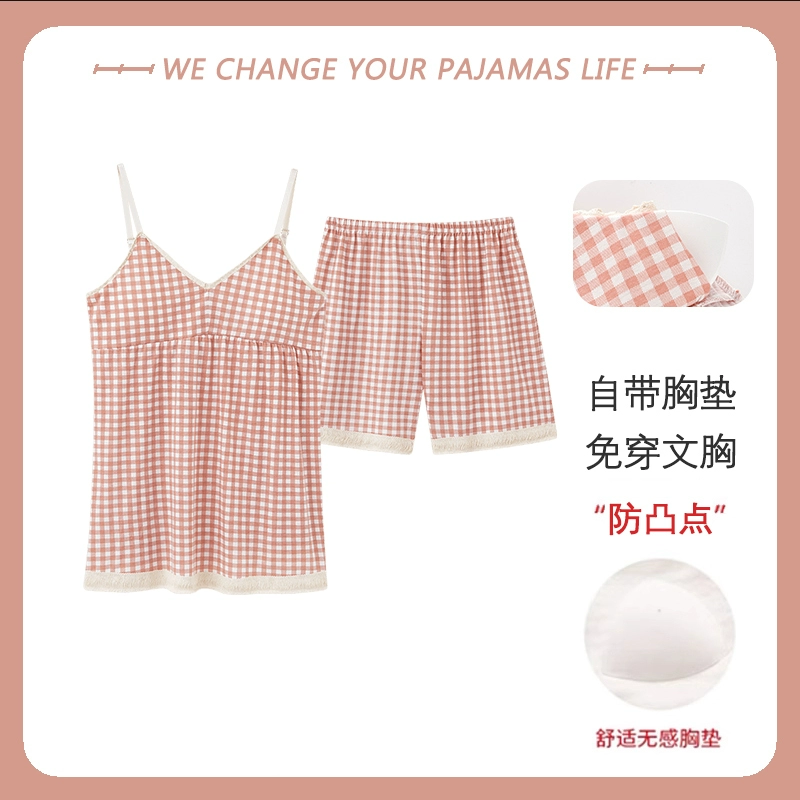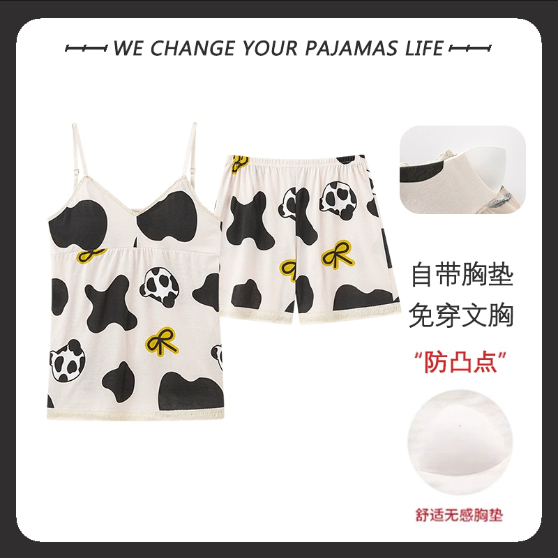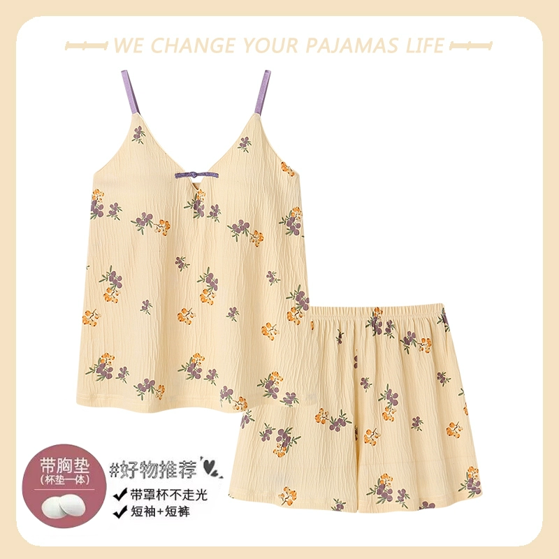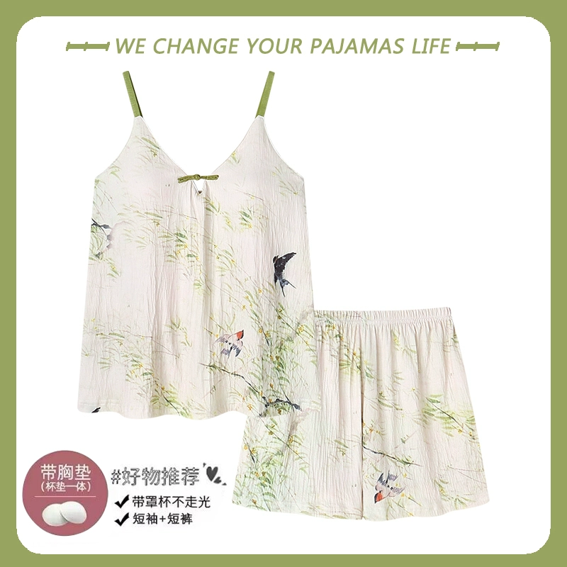 Yu Zhaolin 2024 new summer pajamas for women with chest pads, pure cotton suspenders, thin sexy home wear two-piece set