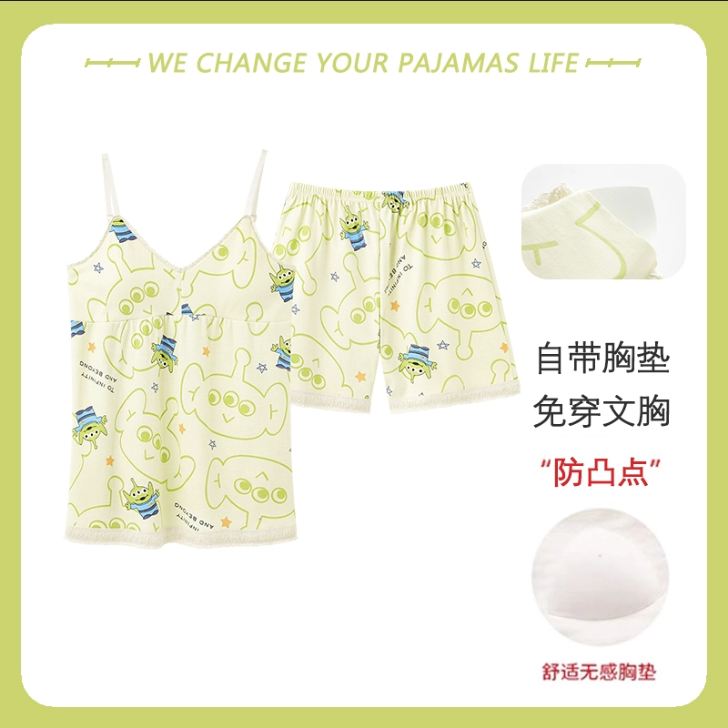 Yu Zhaolin with chest pad 2024 new summer pajamas female pure cotton sling thin sexy home service two -piece suit