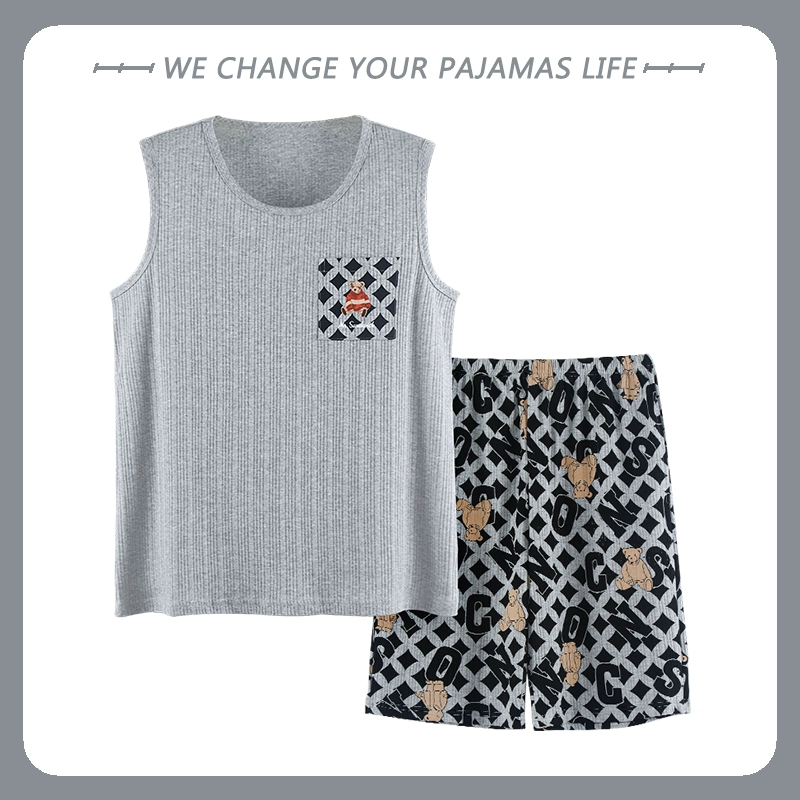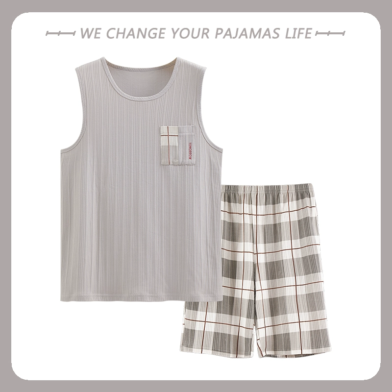 Yu Zhaolin men's pure cotton sleeveless vest summer pajamas