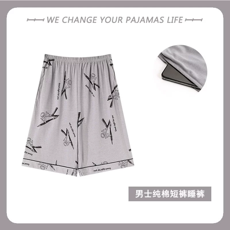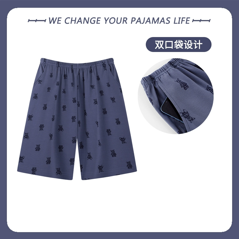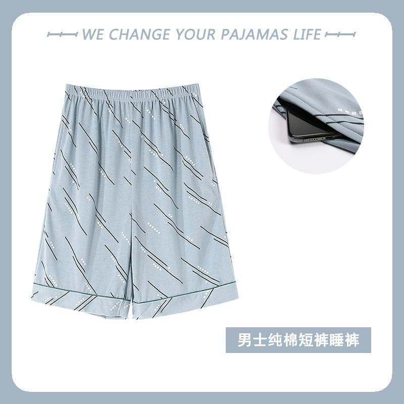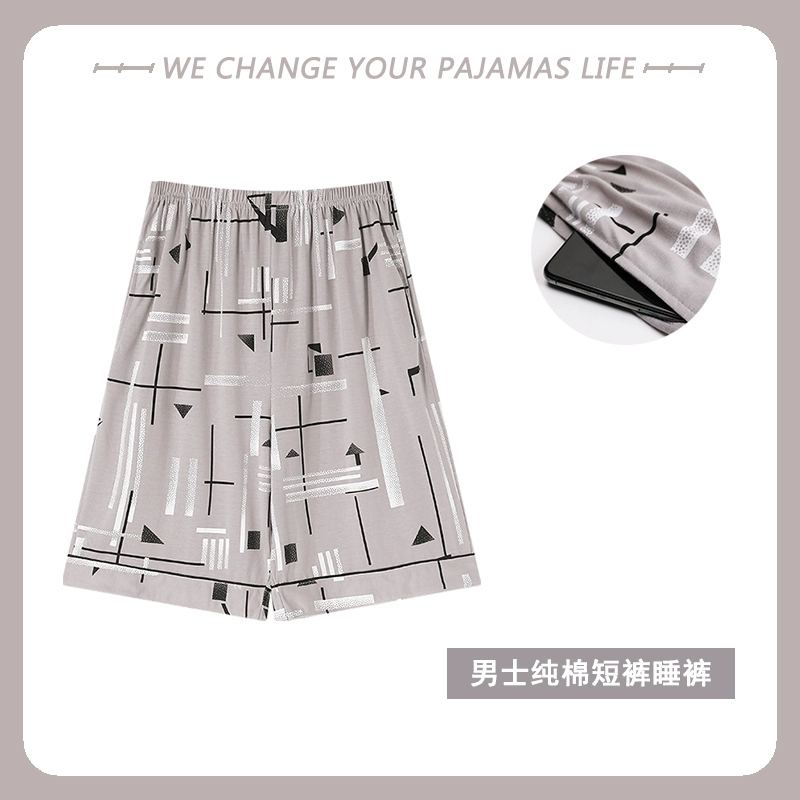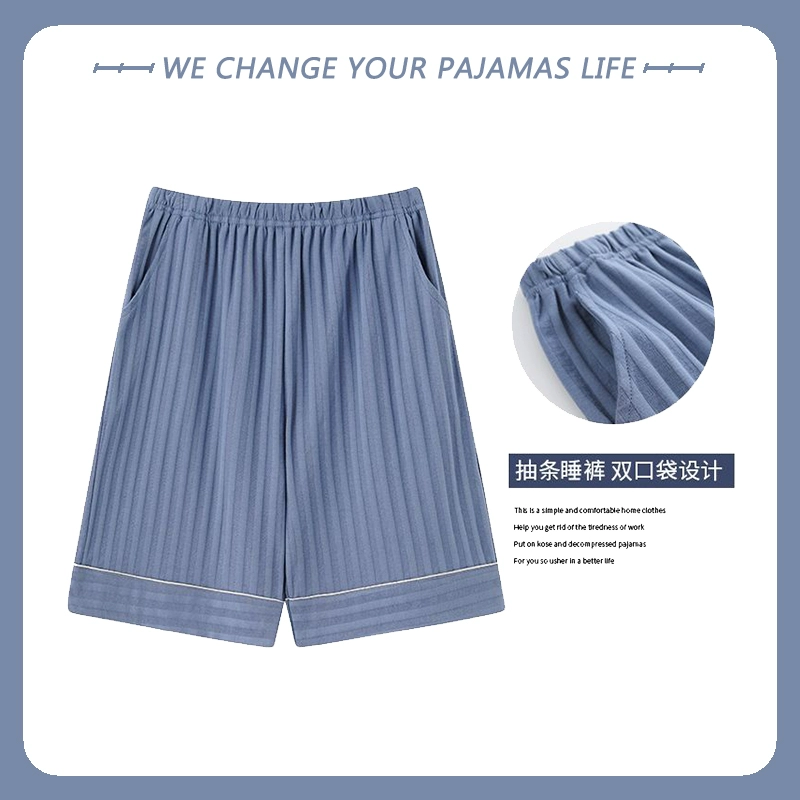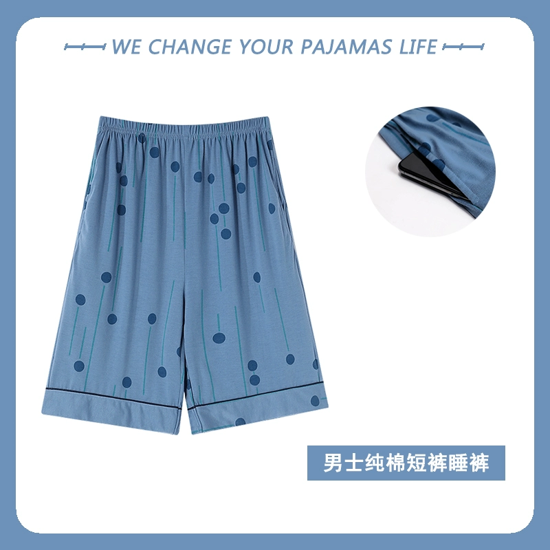 Yu Zhaolin pajamas men's summer pure cotton casual plus fat large size five-quarter pants large pants summer thin home pants