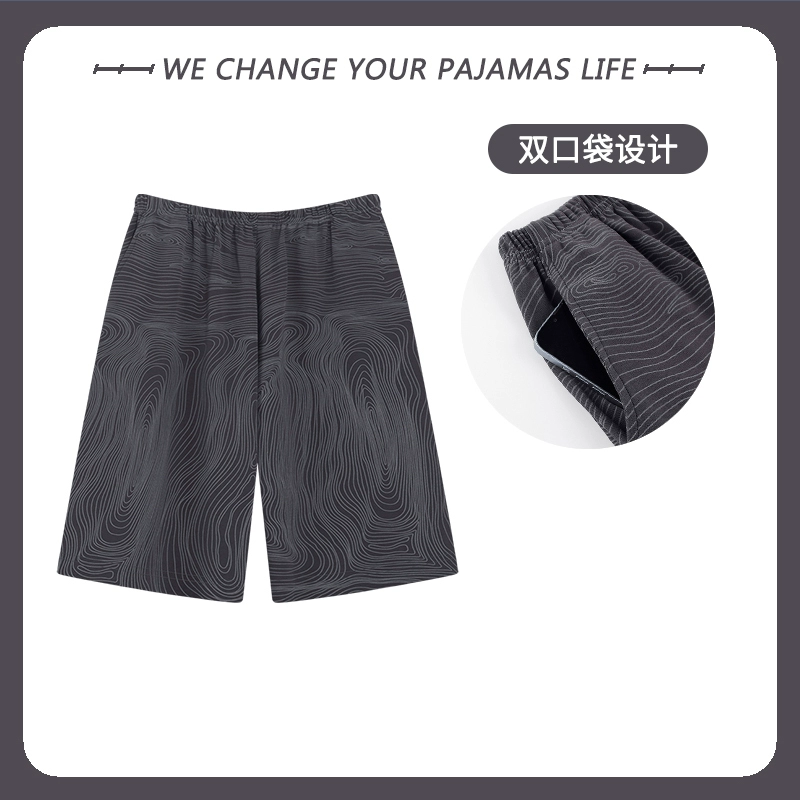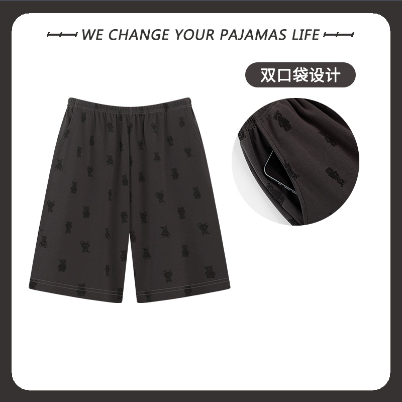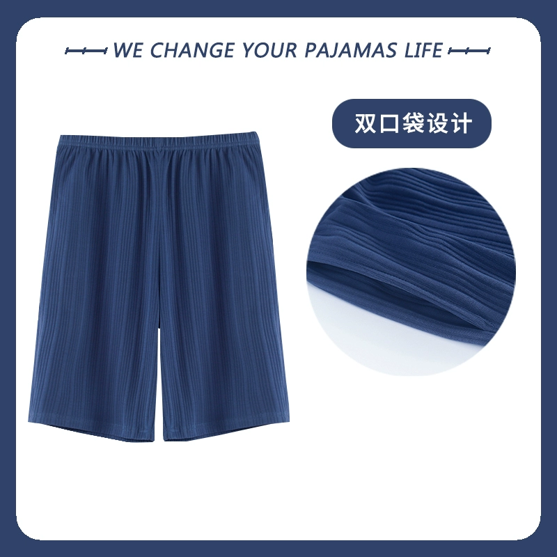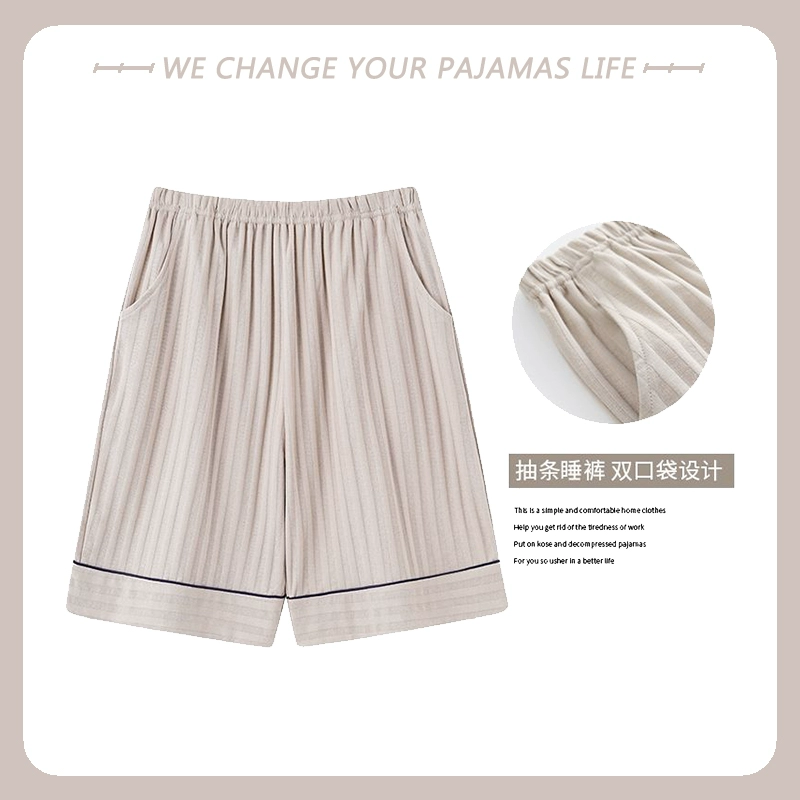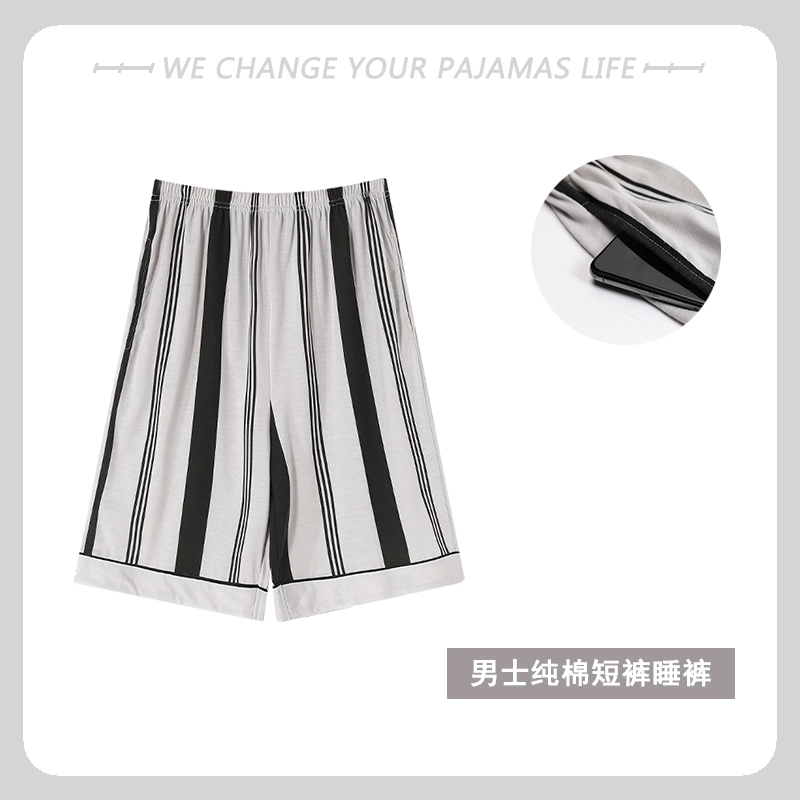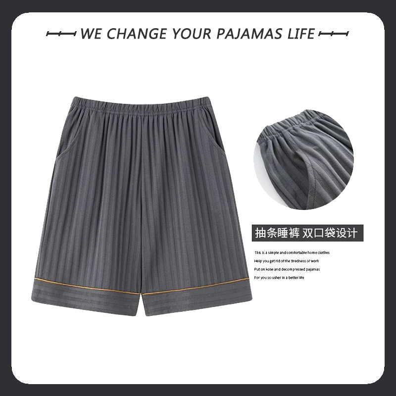 Yu Zhaolin pajamas men's summer pure cotton casual plus fat large size five-quarter pants large pants summer thin home pants