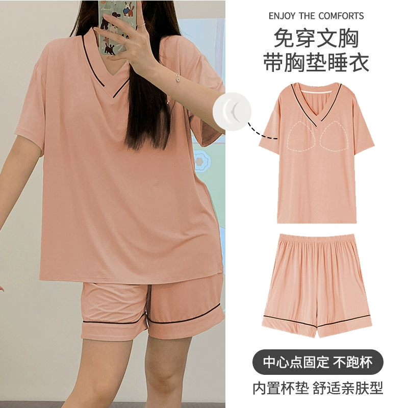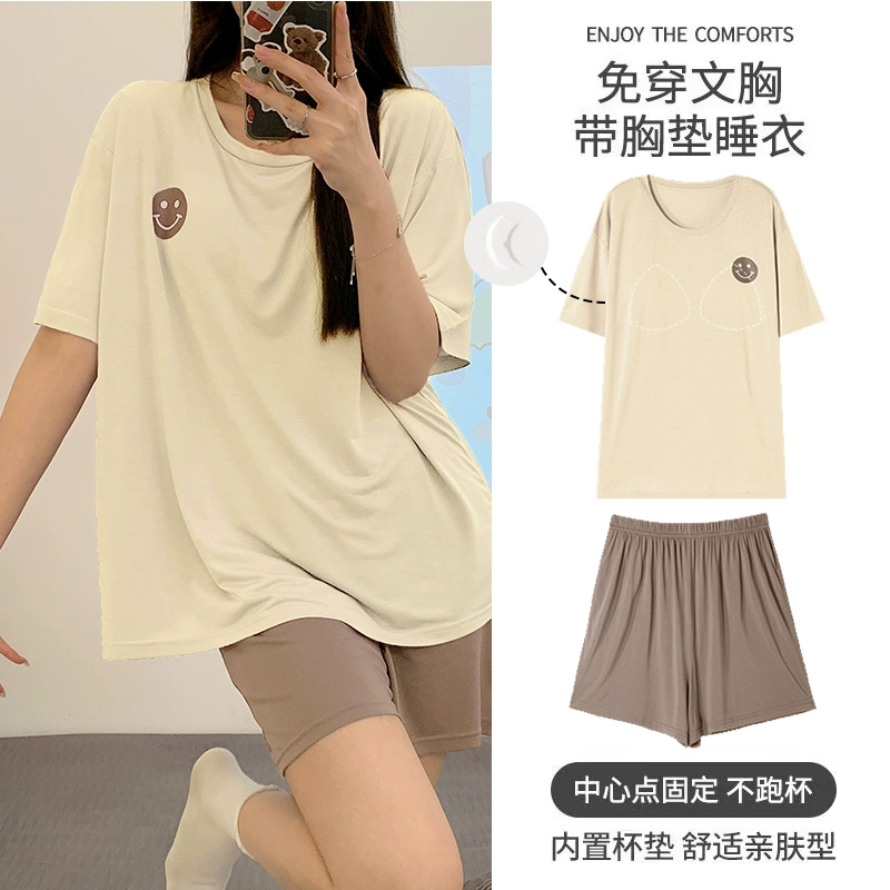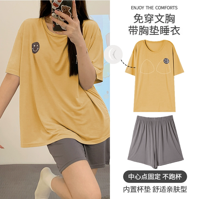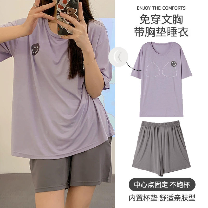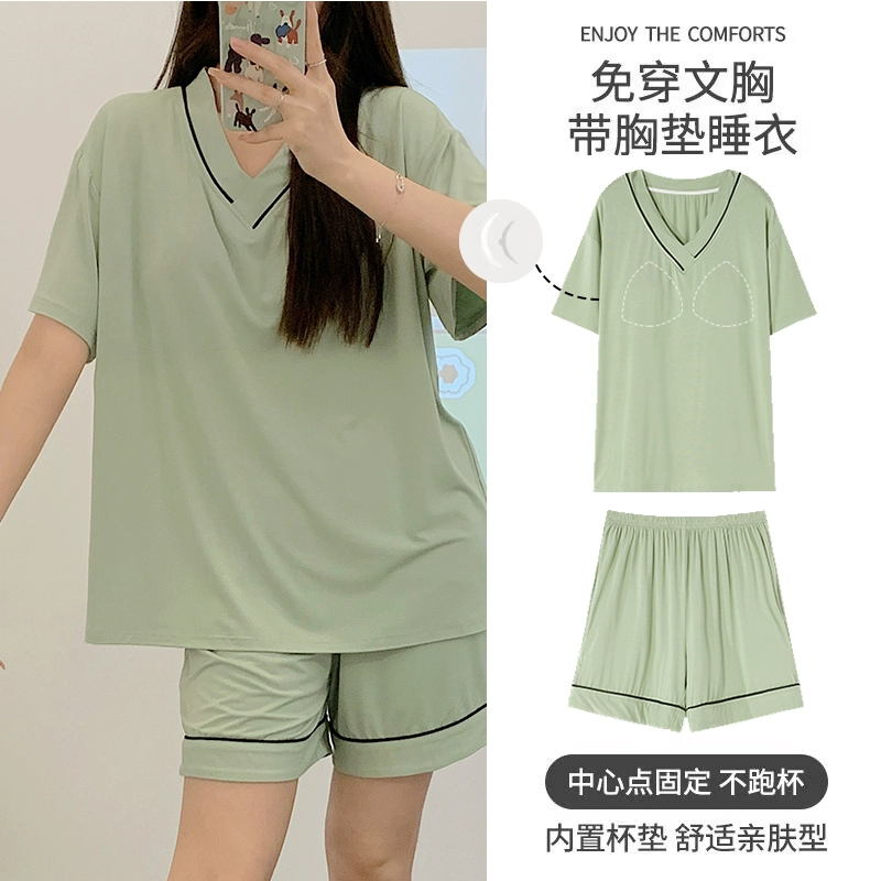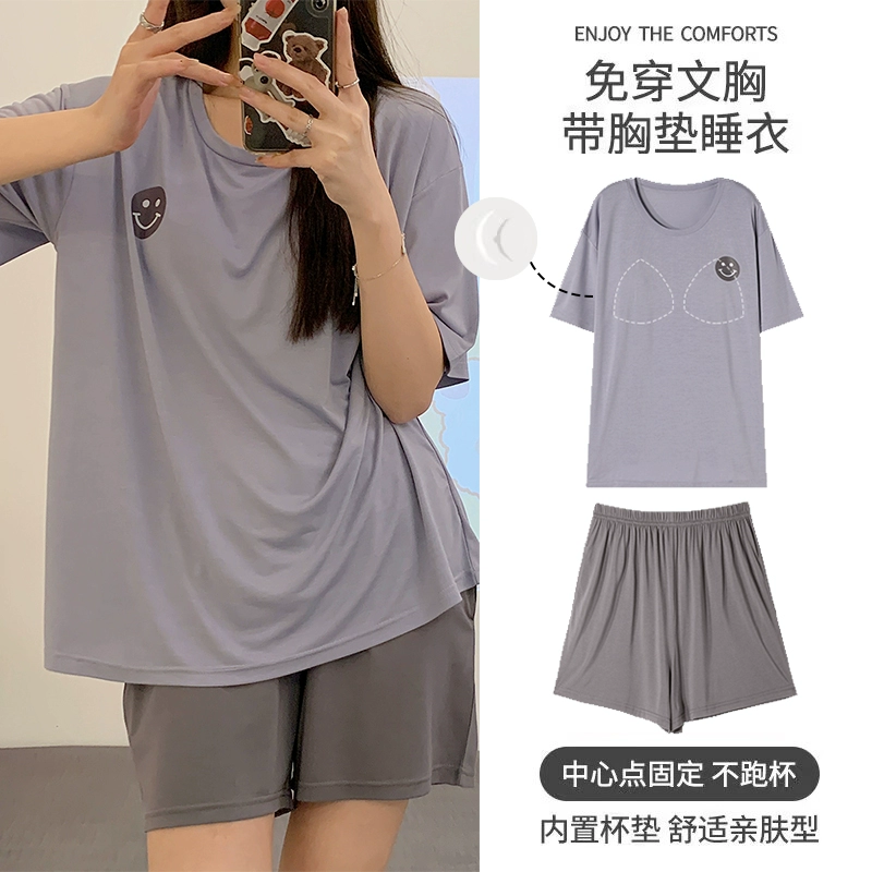 | nameOriginal | Yu Zhaolin Pajamas with Breast Pads for Women Summer Modal Cotton Short Sleeves Thin Ice Silk Can Be Weared Out and Anti-Bump Home Clothes |