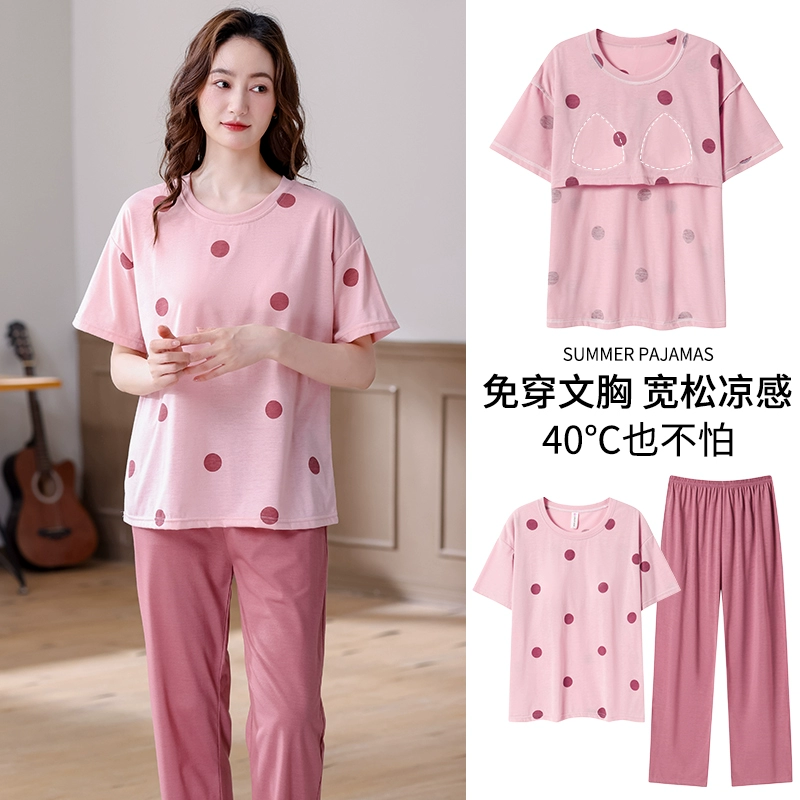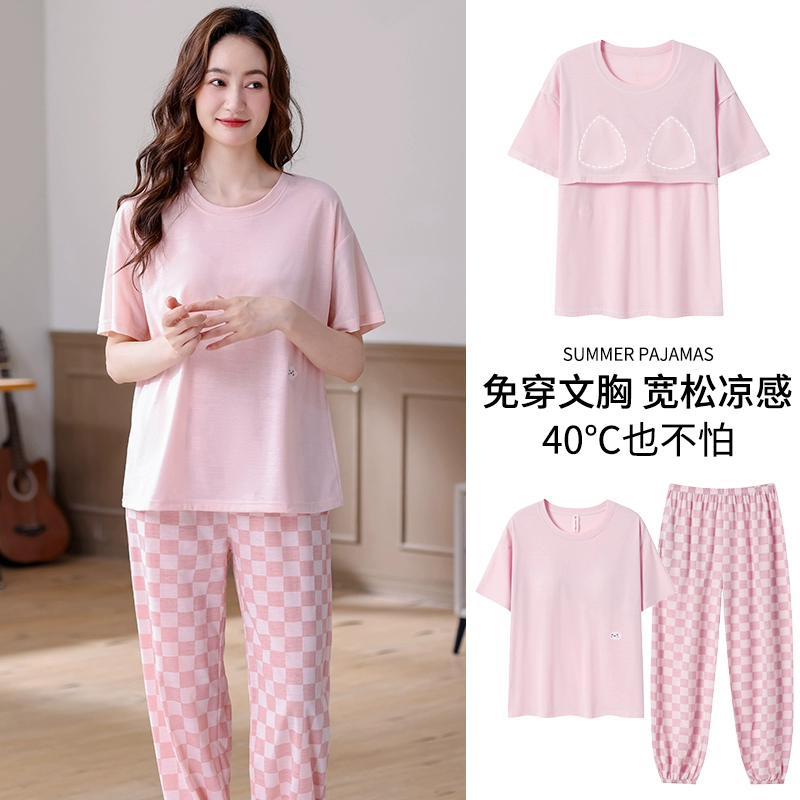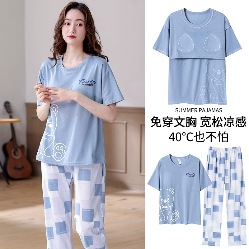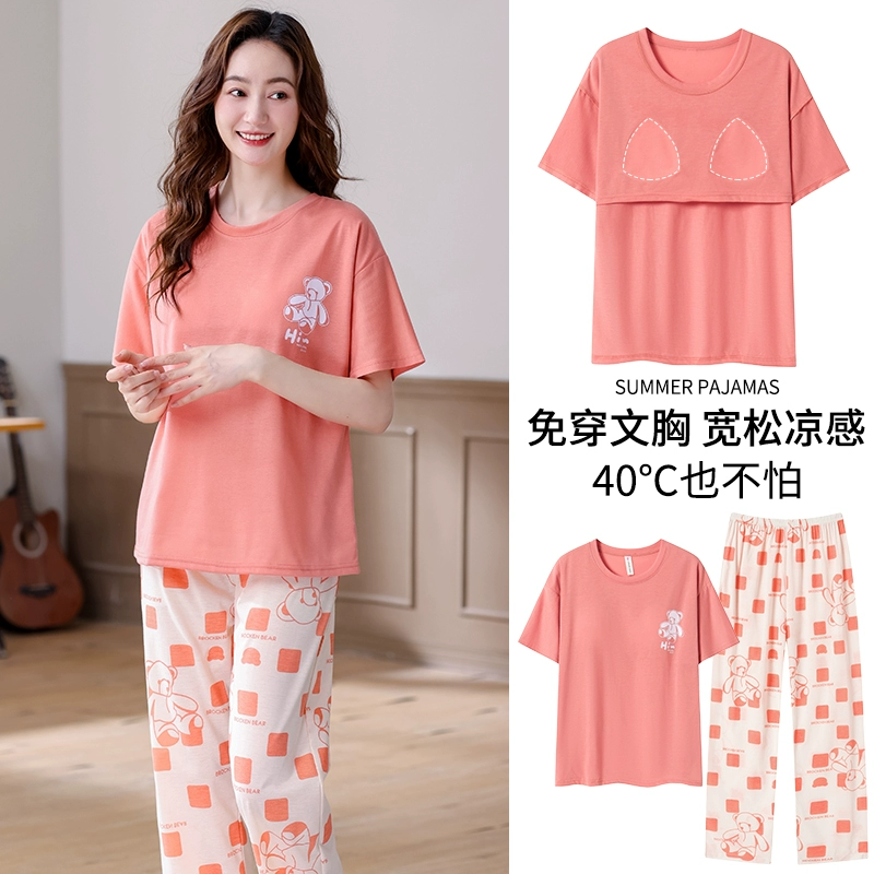 | nameOriginal | Yu Zhaolin pajamas women's summer pure cotton short-sleeved trousers set thin style with chest pad to prevent bumps can be worn outside home clothes |