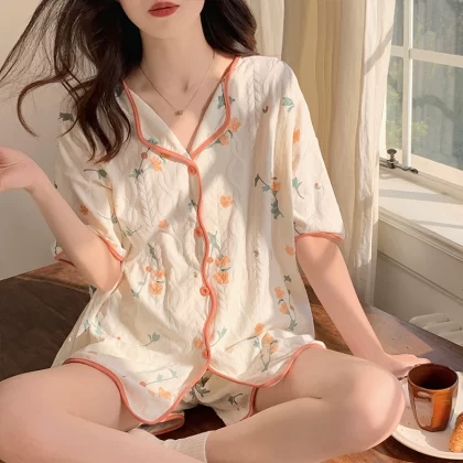 Yu Zhaolin pure cotton women's small lapel pajamas 2023