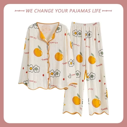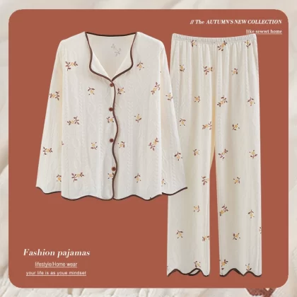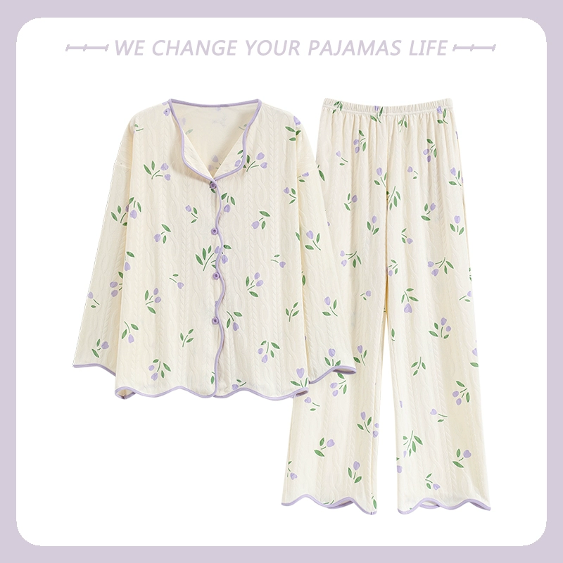Yu Zhaolin spring and autumn women's pure cotton home wear pajamas