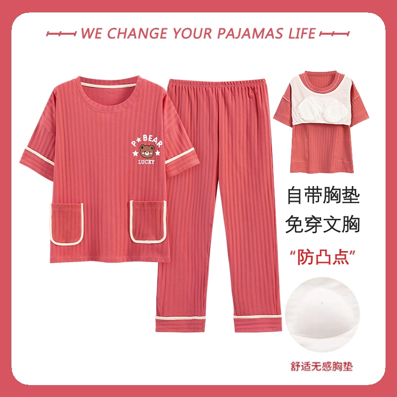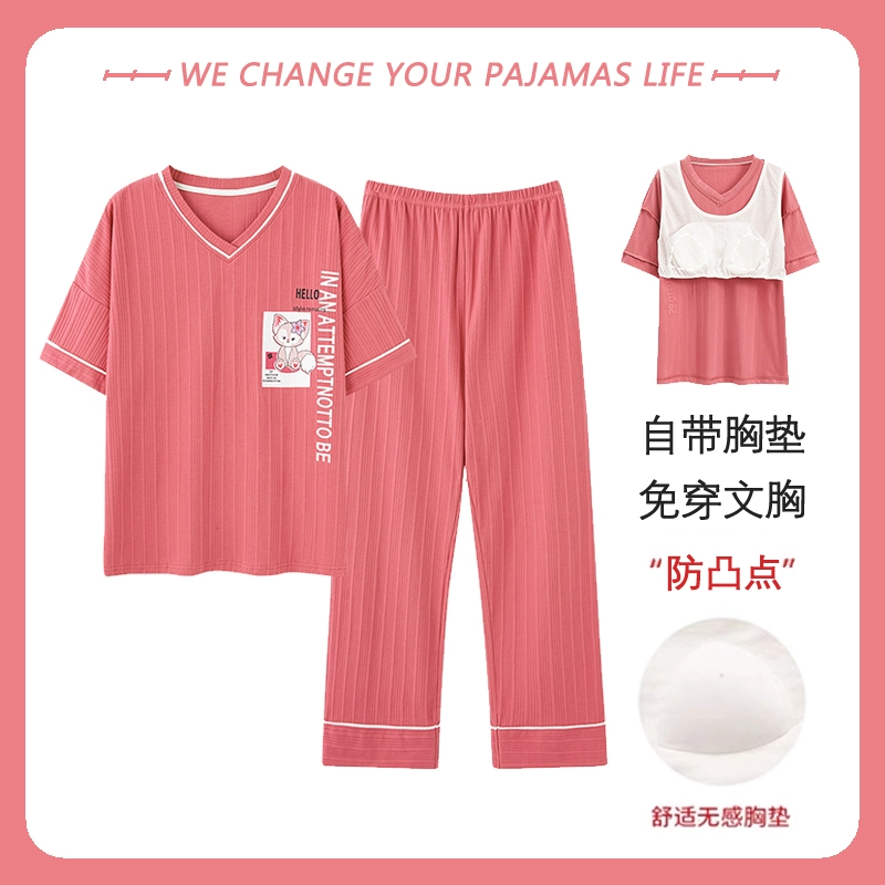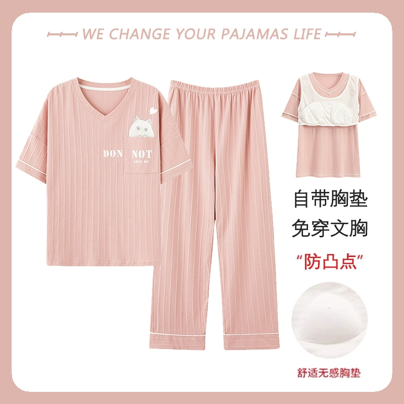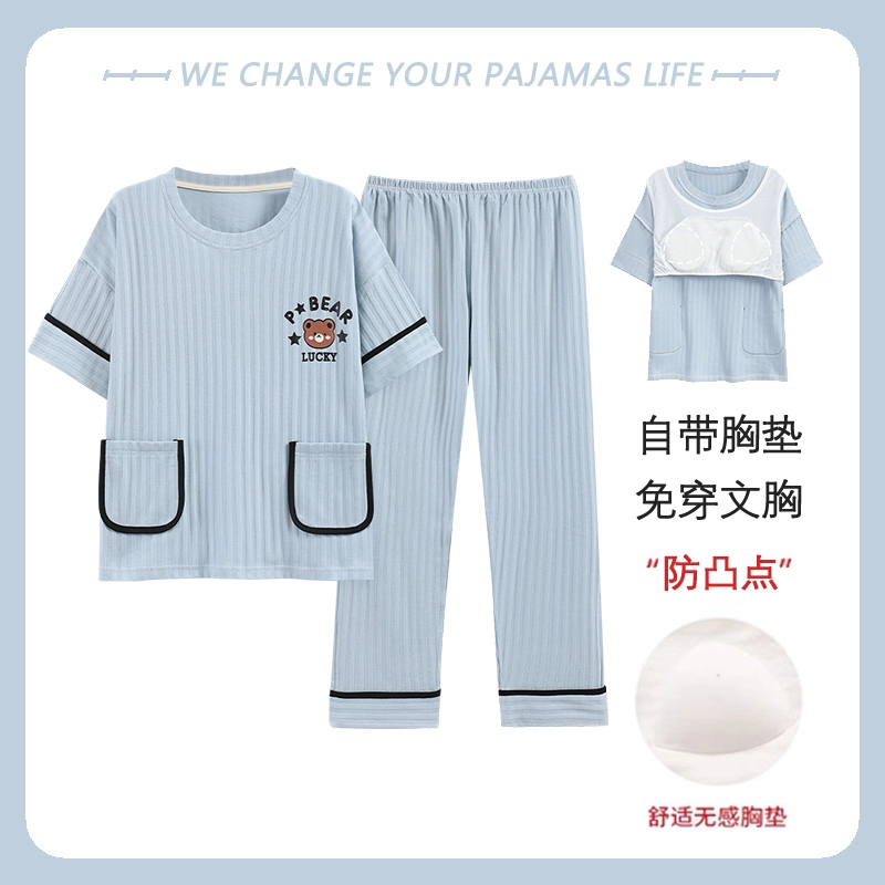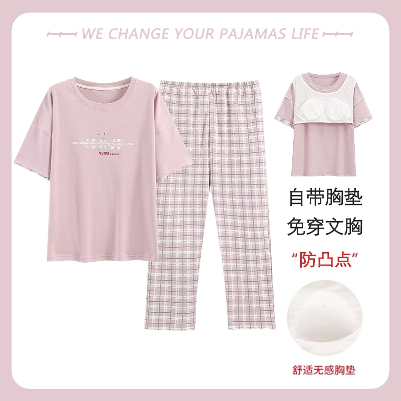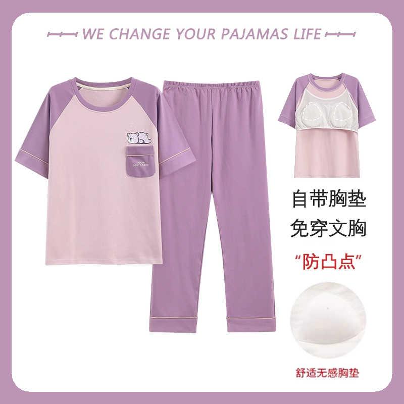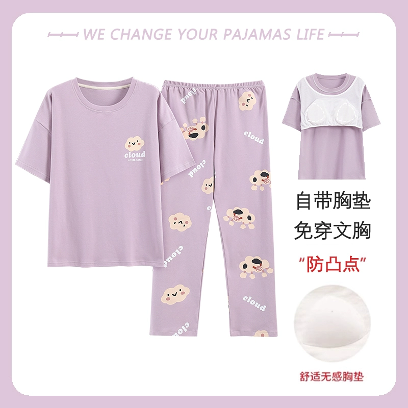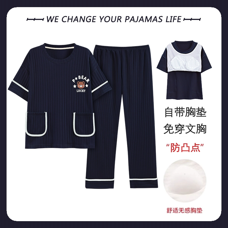Yu Zhaolin women's breast pad pure cotton plus fat home wear pajamas