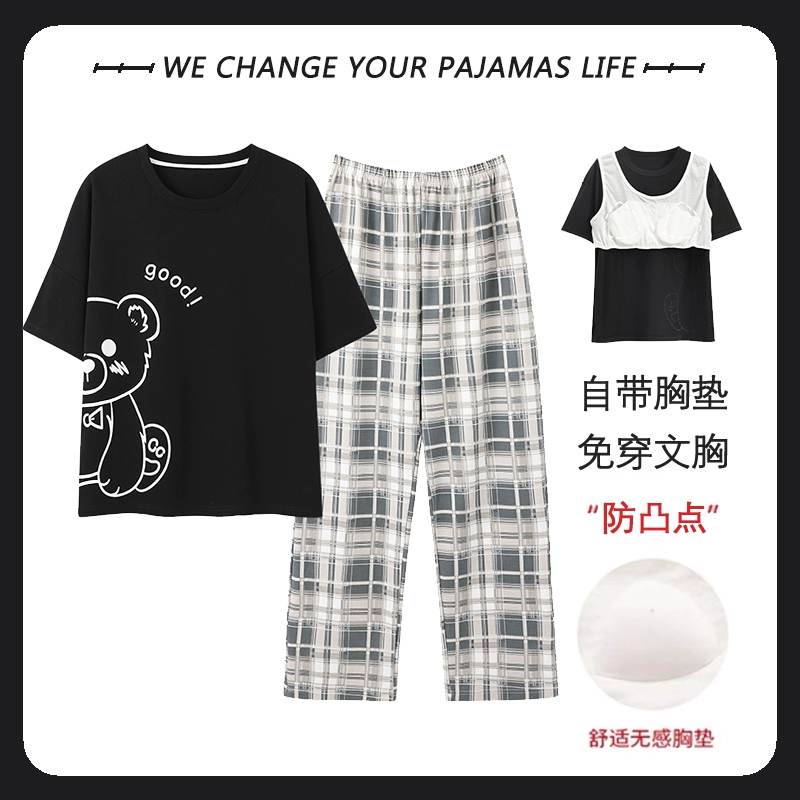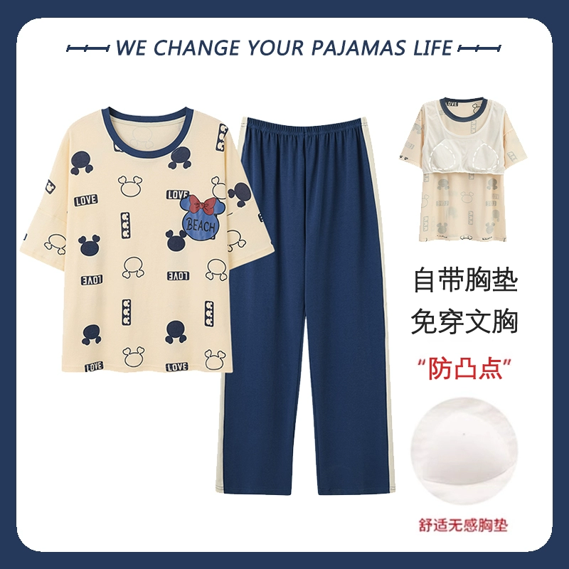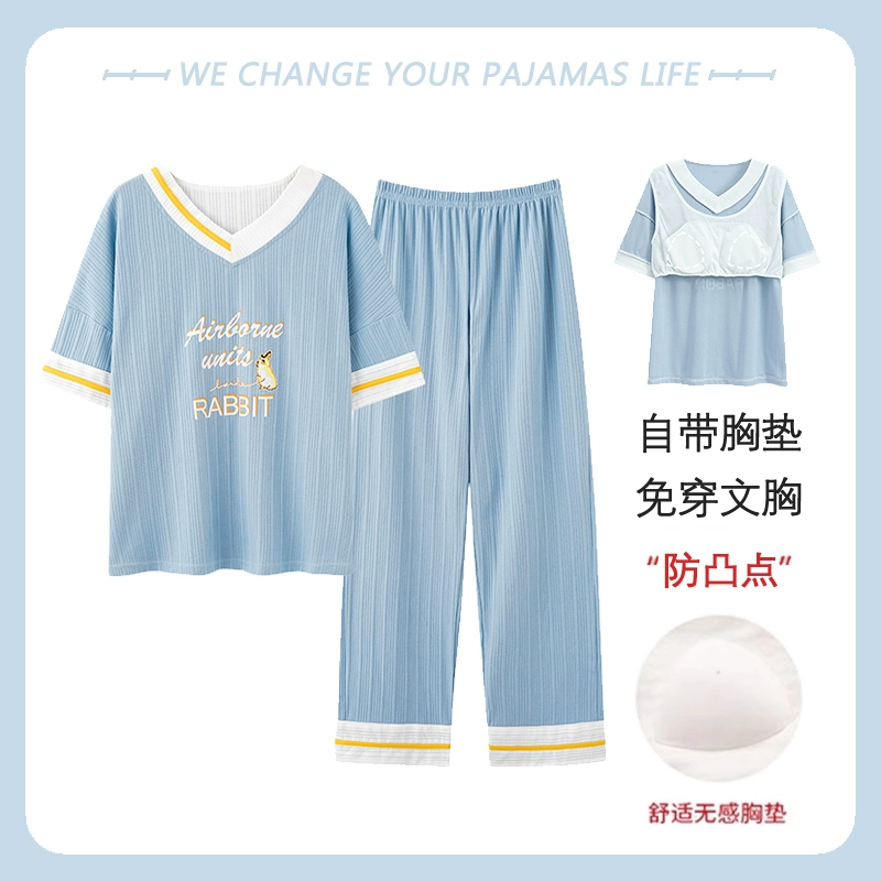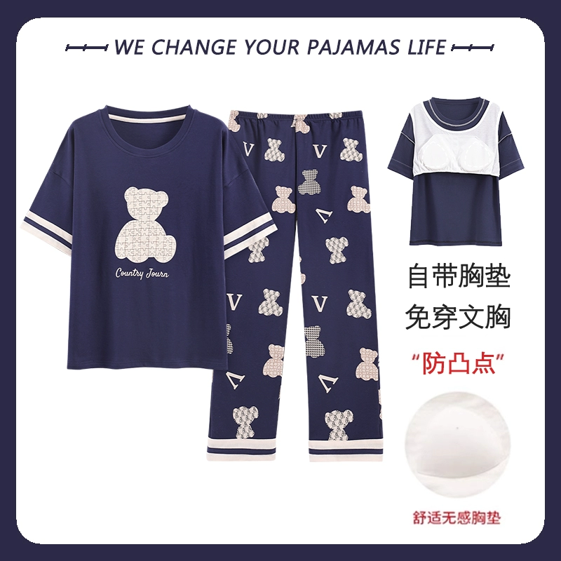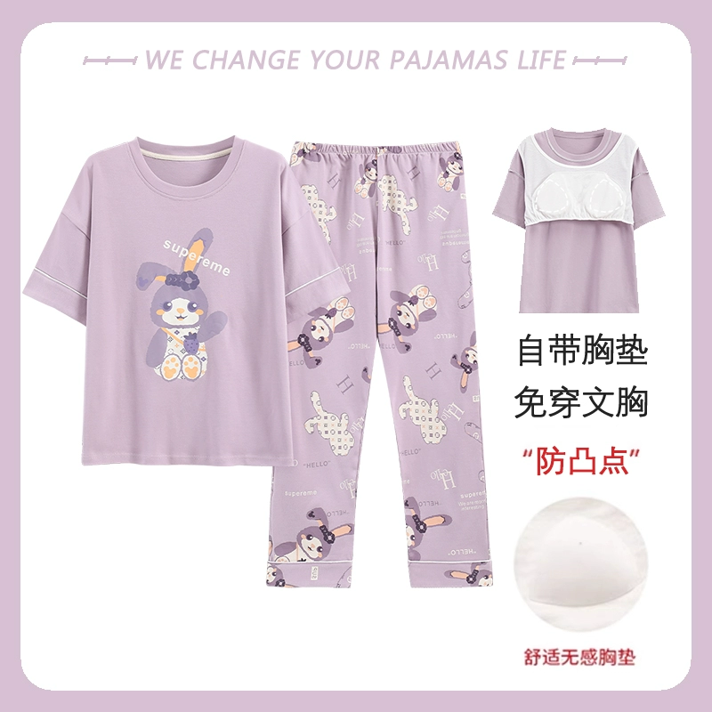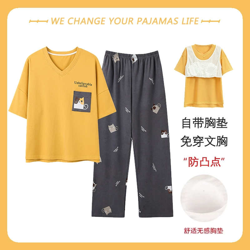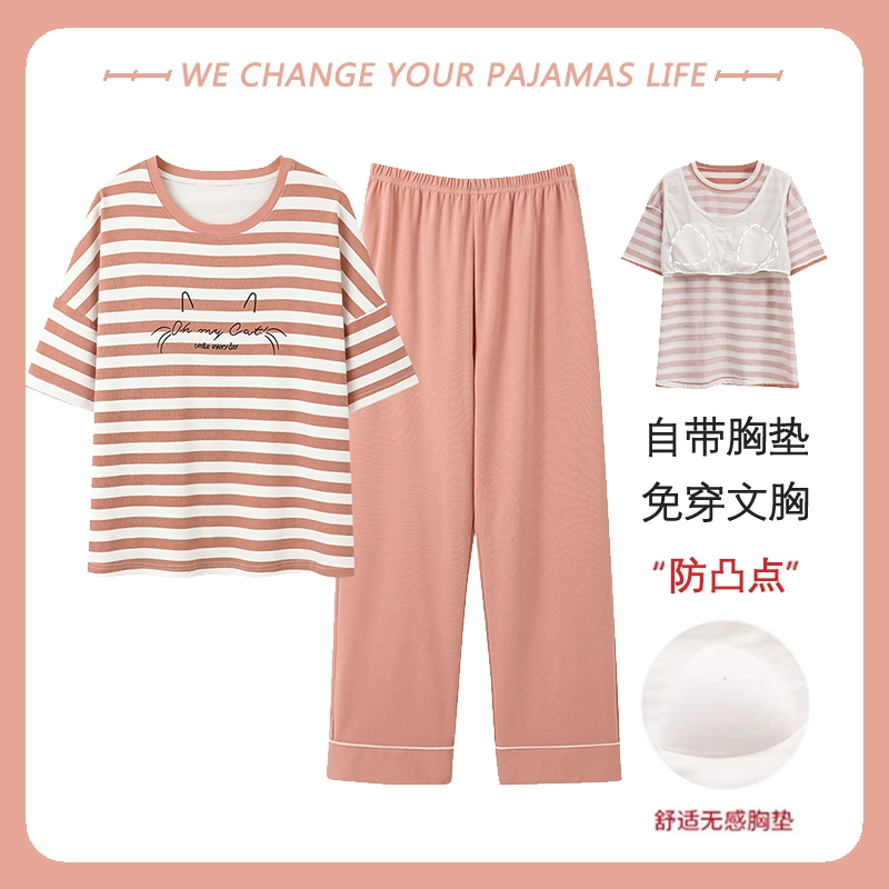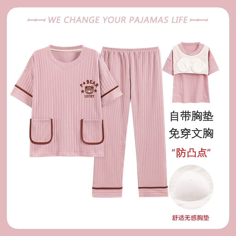 Yu Zhaolin women's breast pad pure cotton plus fat home wear pajamas