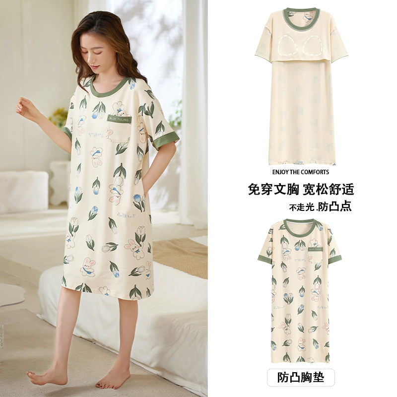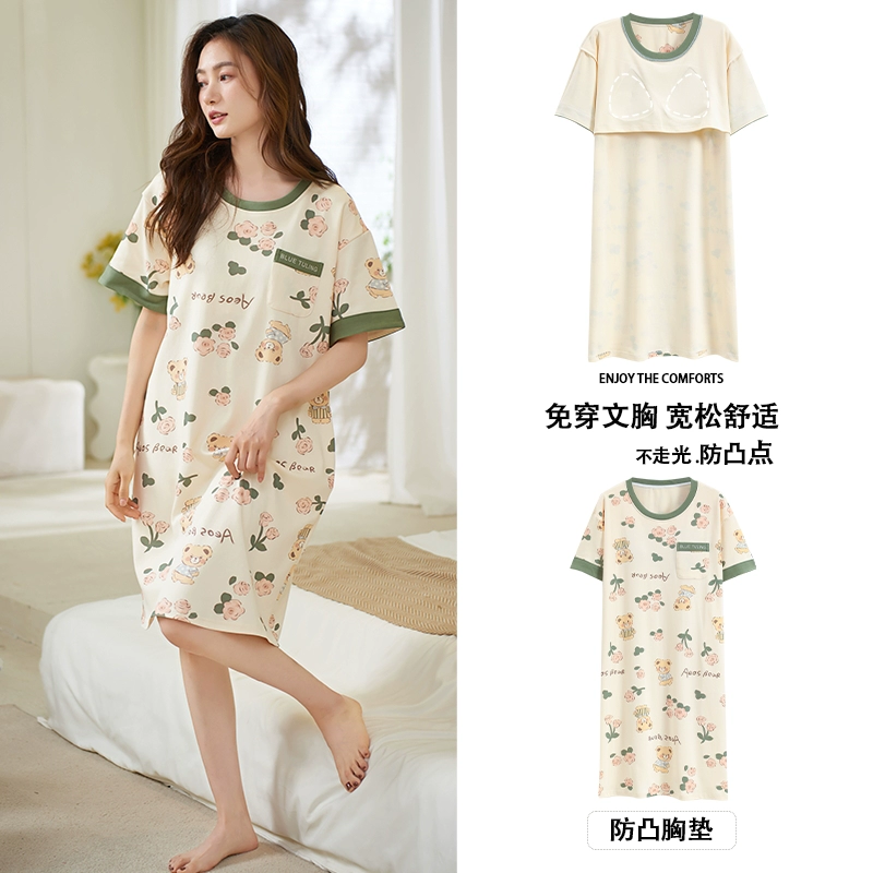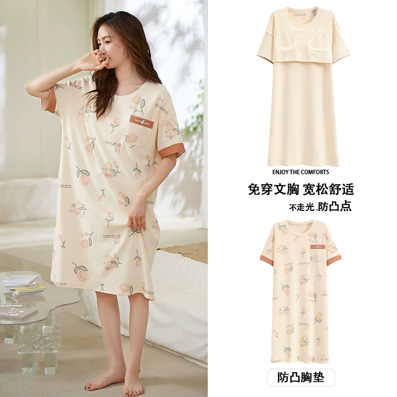 | nameOriginal | Yu Zhaolin women's summer thin cotton all-in-one pajamas with breast pads, short-sleeved Internet celebrity style, can be worn outside home clothes |