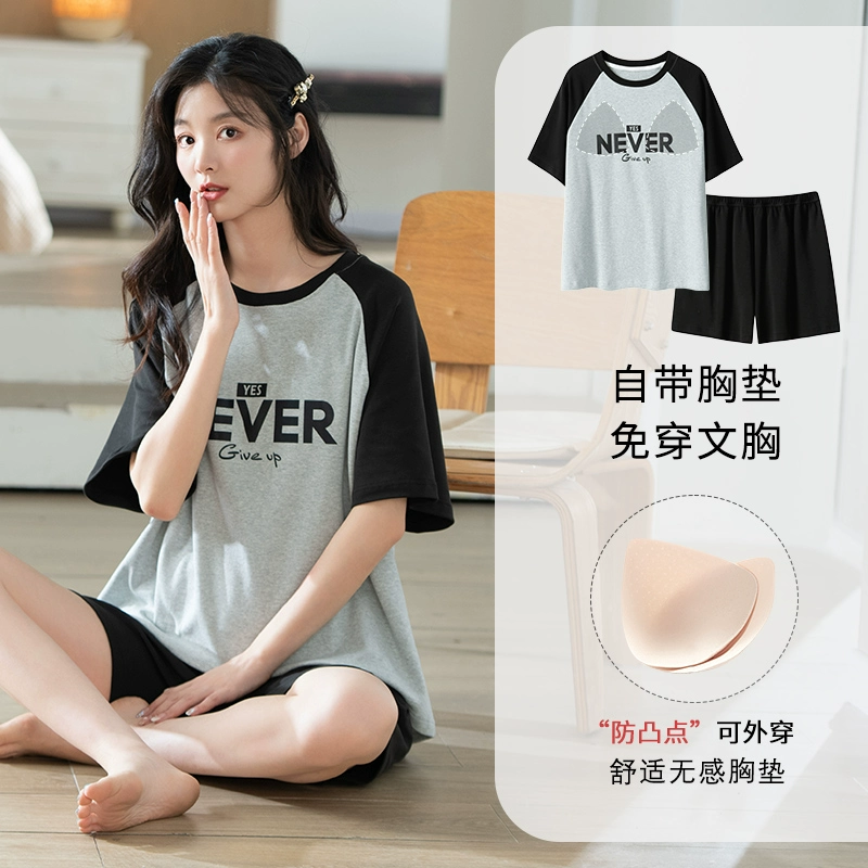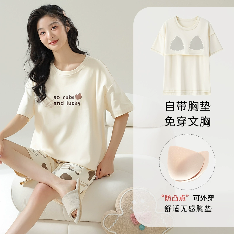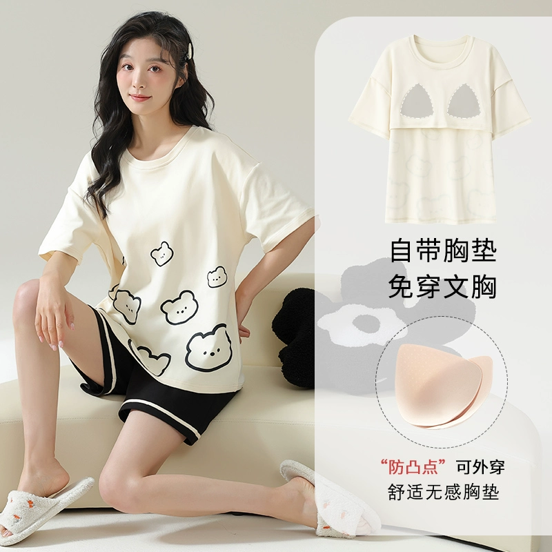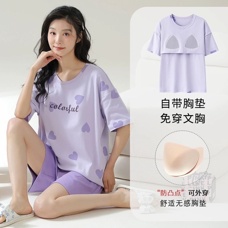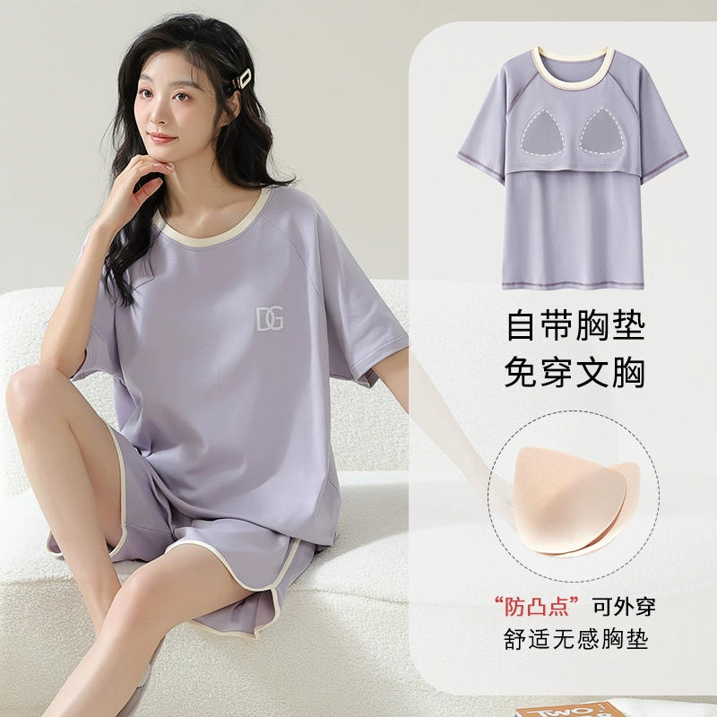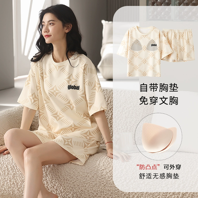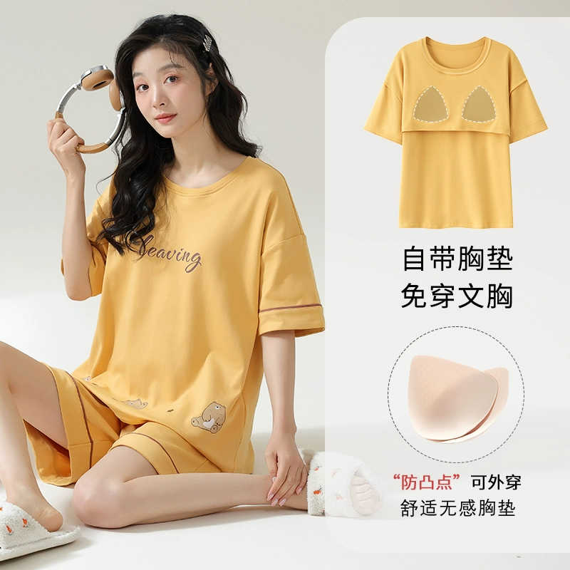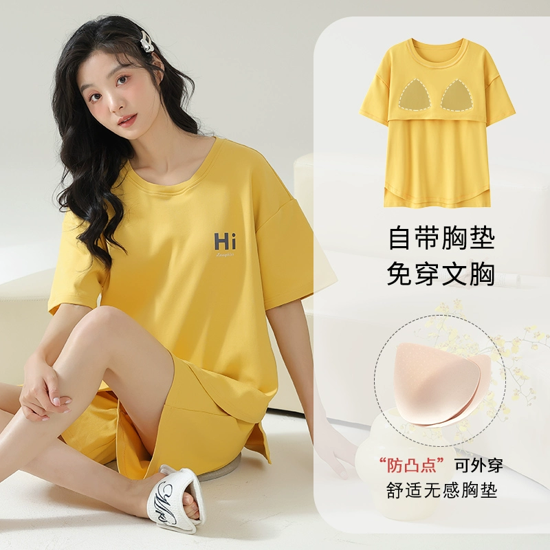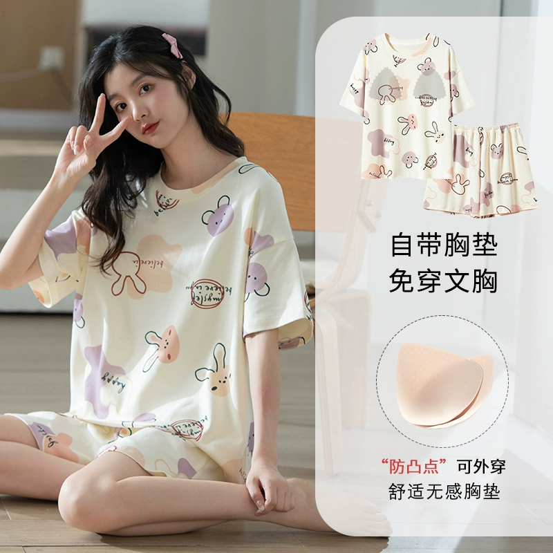 | nameOriginal | Yu Zhaolin's own breast pad pajamas for women, summer anti-bump pure cotton, can be worn outside, summer home clothes two-piece set |