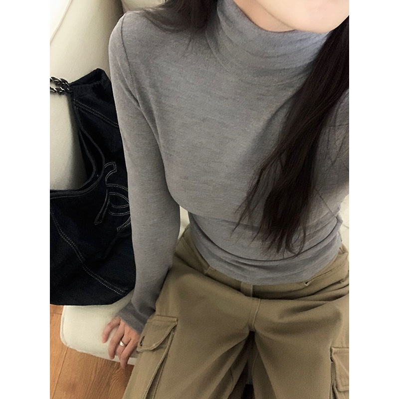 | nameOriginal | Yuanpai bluepops2024 Autumn New High Collar Base Shirt Soft Waxy Slim Solid Color Long Sleeve T-shirt Women W0344 |