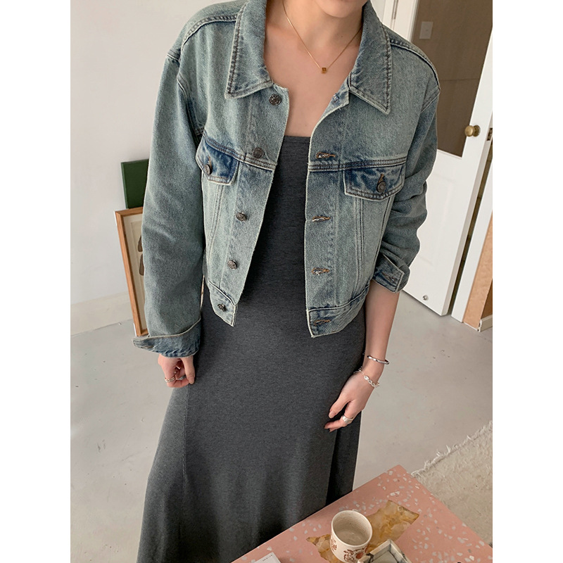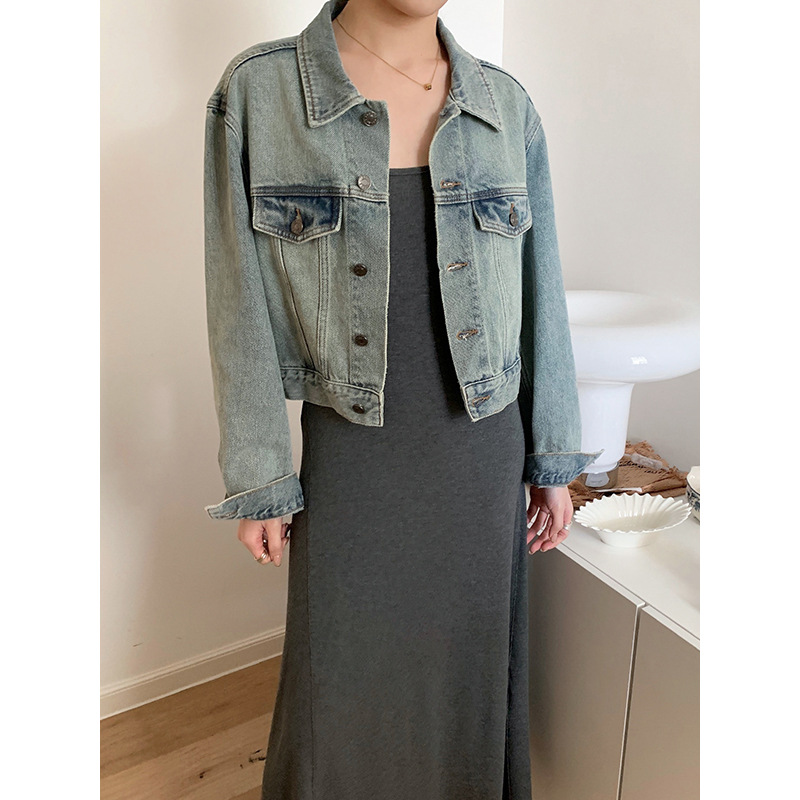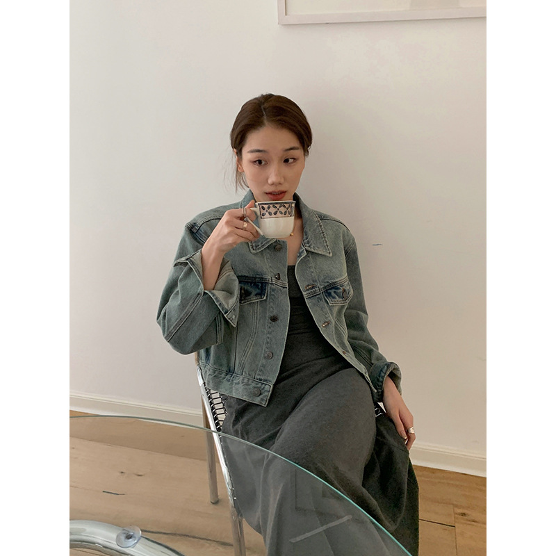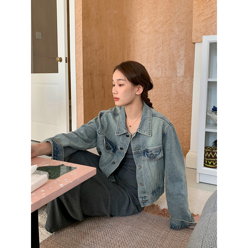 | nameOriginal | Yuanpai bluepops2024 early spring new retro washed Denim coat lapel cardigan top for women A4043 |